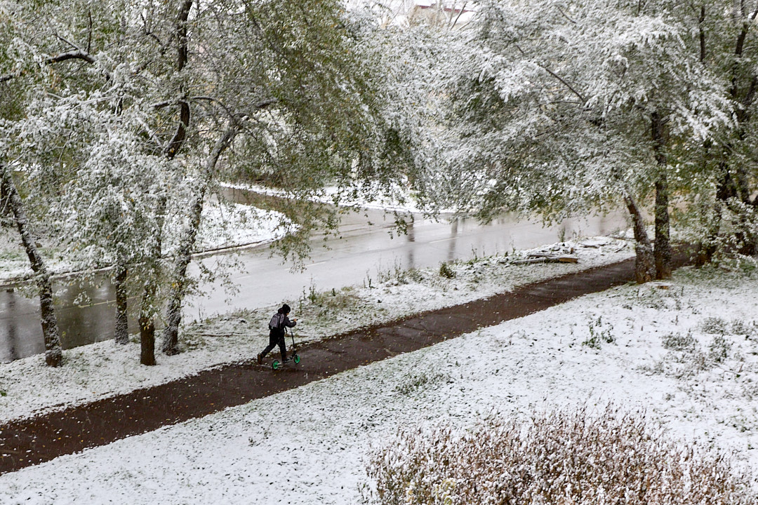 Снега см 30-40... Парень шёл, почти по колено...