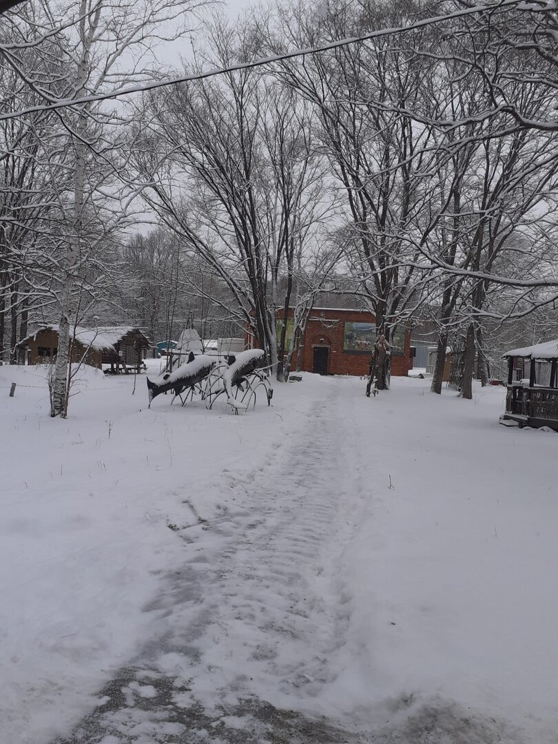 Ну а чо, нормально, кафе напротив?Вид с крыльца центральной усадьбы заповедника "Комсомольский" (мое рабочее место).