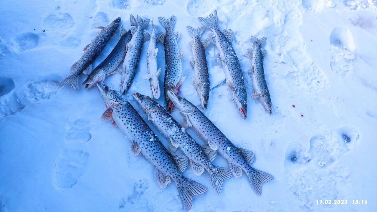 Сегодня день нереализованых подходов, первая попалась что на фото, далее 2 подхода не меньше, а то и гораздо крупней, первая ушла в лунке, еле завел, но открыла пасть и краб вылетел, вторая после непродолжительной борьбы срезала 0.6 леску, в14:30 была поймана еще килошка