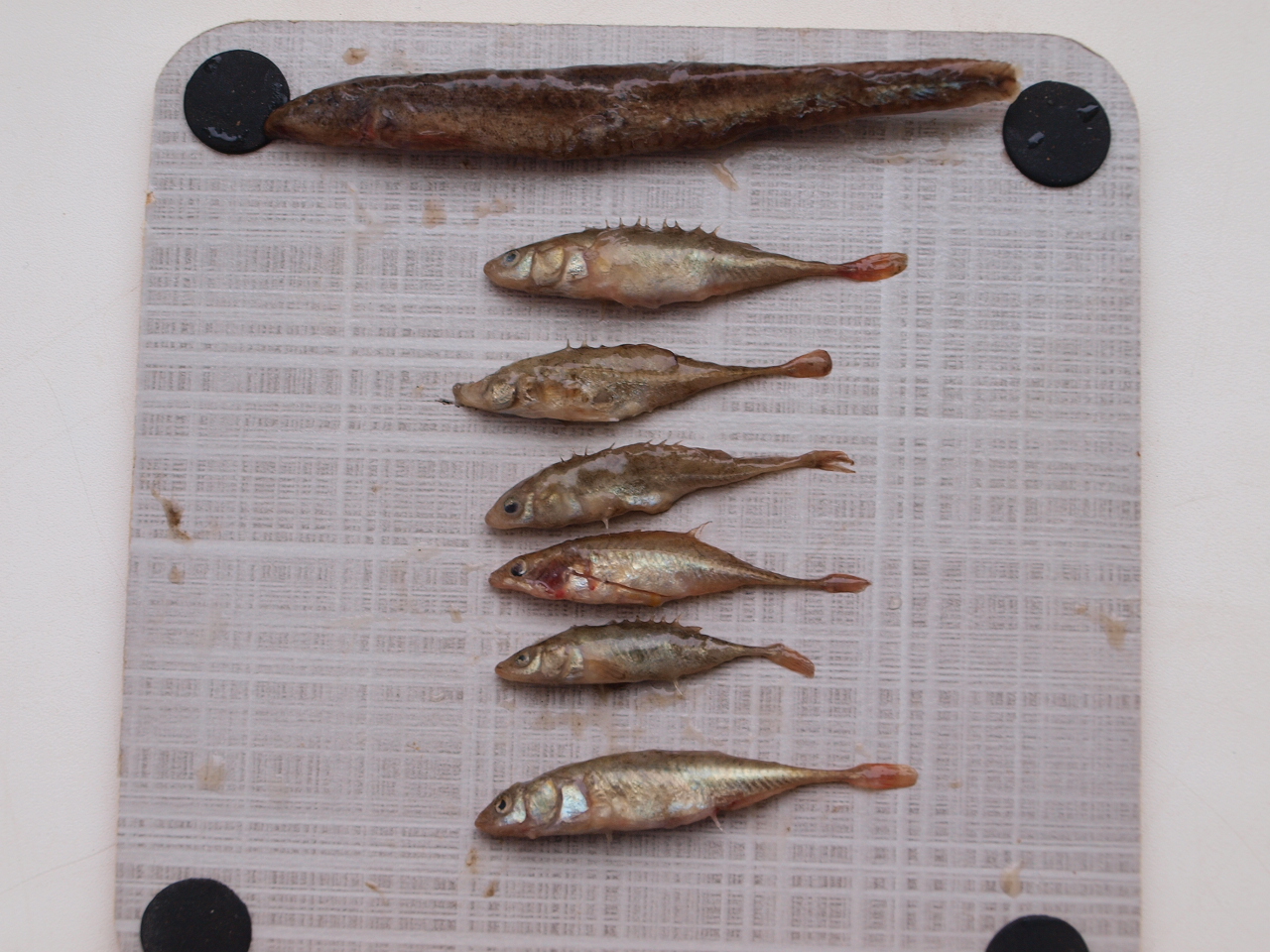 Разделываю сейчас щук, так у всех желудки просто забиты мальком судака.только изредка попадается синявки и карасики.на девятииглую корлюшку вроде непохожи.Я насчитал толи 11 , толи 12 колючек на спине.