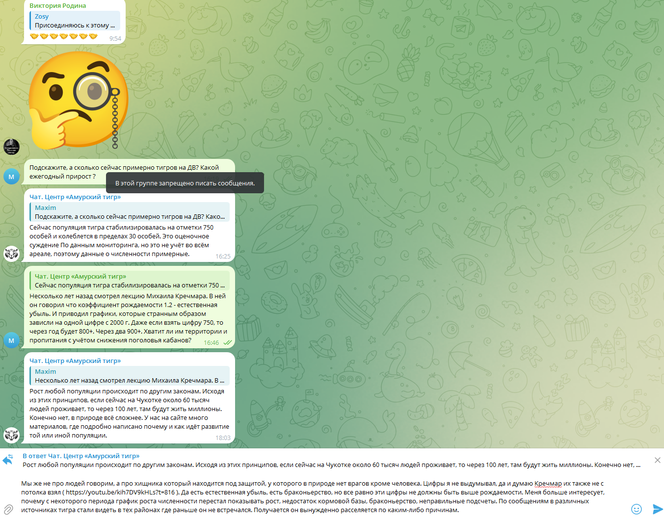 Гнилая контора. Банальный вопрос (но видимо неудобный) о численности тигров привел к бану :E009: