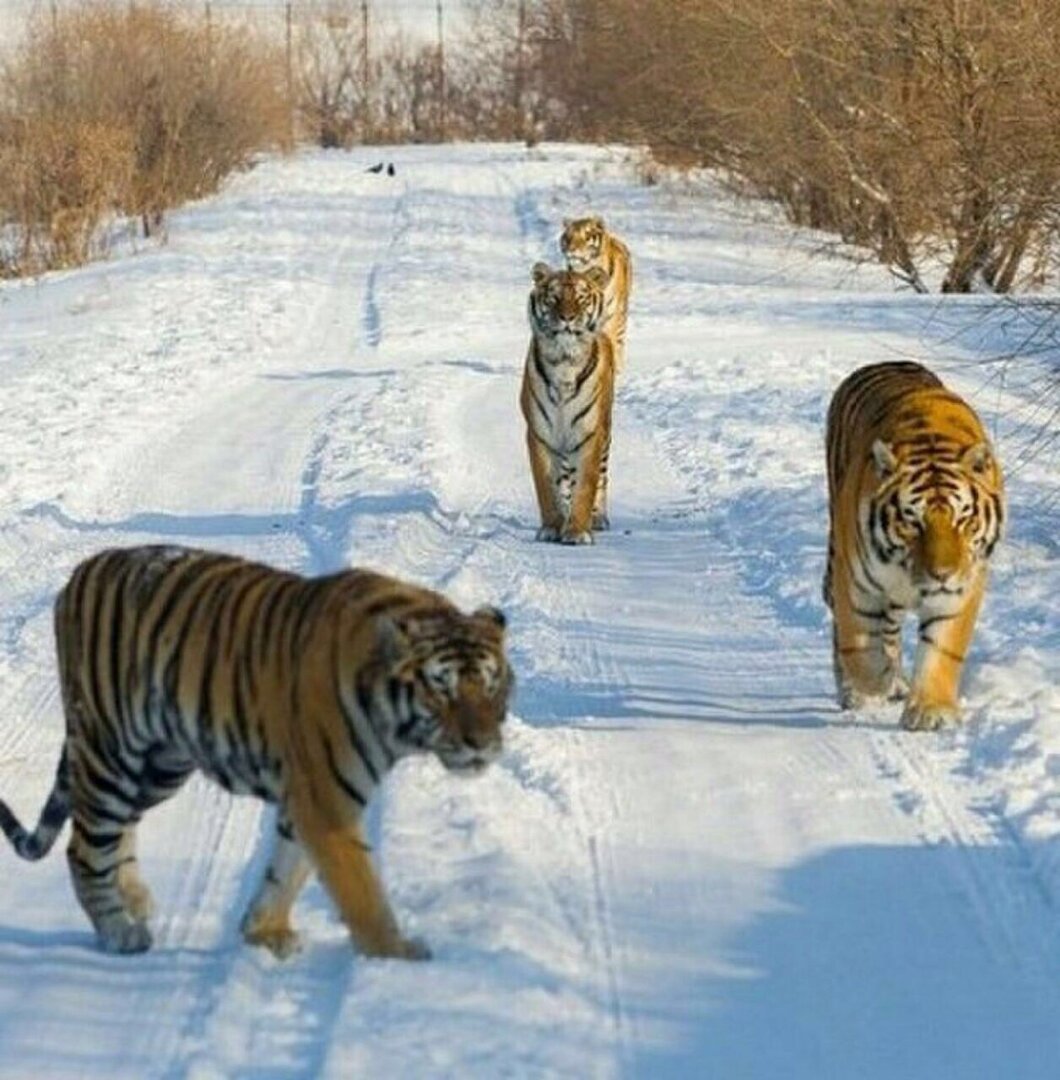 Оле-ег, я ж совсем не настаиваю в том, что это наши тигры. Я не помню, кстати, есть ли именно на сопке над Корфой антенные поля, я там проходил мимо всего лишь пару раз давно. Я лишь ответил на "возмущение", мол, тигры ходят лишь парами, взявшись за руки, а тут четверо идут ее строем. И рассказал о том, что ходят, суки, не строем они. Фулиганы Бякины, видимо.И бывают такие ряды/группы ж/б круглых столбов для электрики на ж/д полотне.
