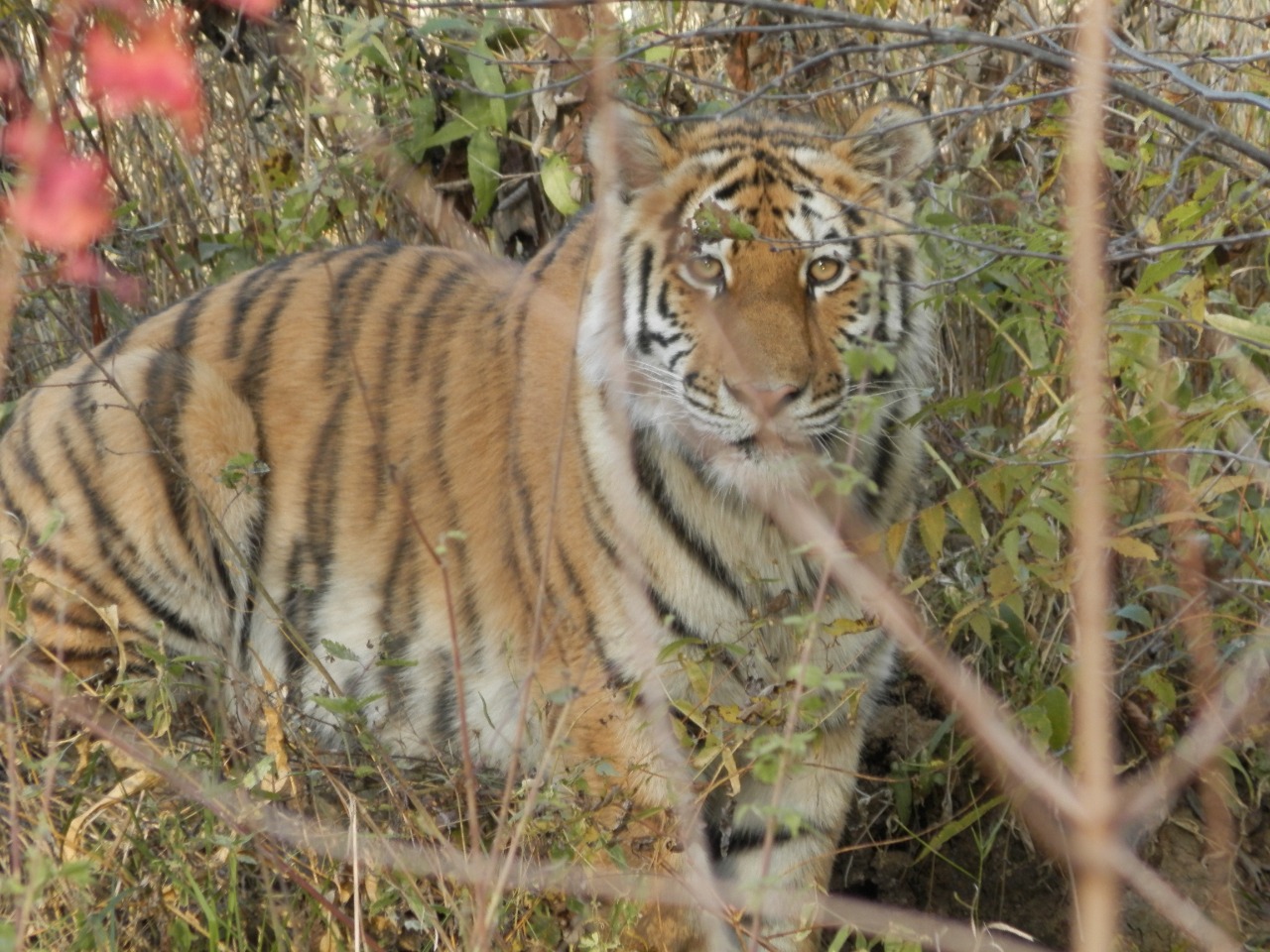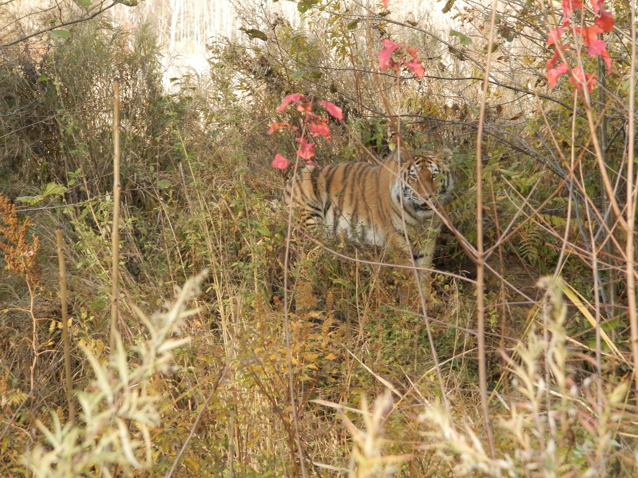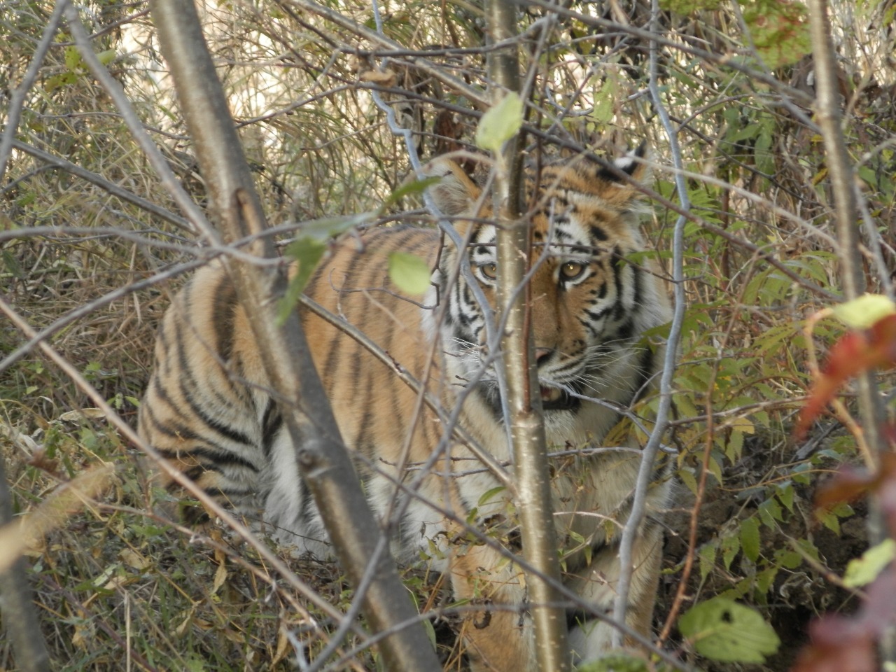 Сегодня сосед по гаражу сообщил, что сегодня днём видел тигрицу с двумя тигрятами, переходящими дорогу. Дело, по его словам, было в районе п.Малышево.