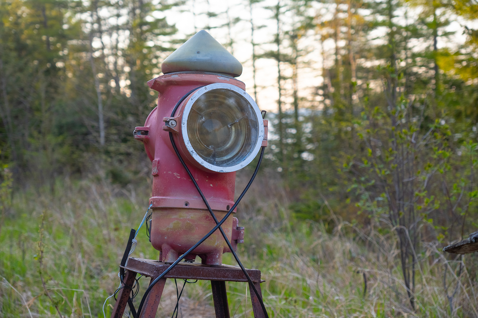 Вечером решили прогуляться по лесу, обнаружили вот такой световой прибор. То ли створа то ли некое подобие маяка.