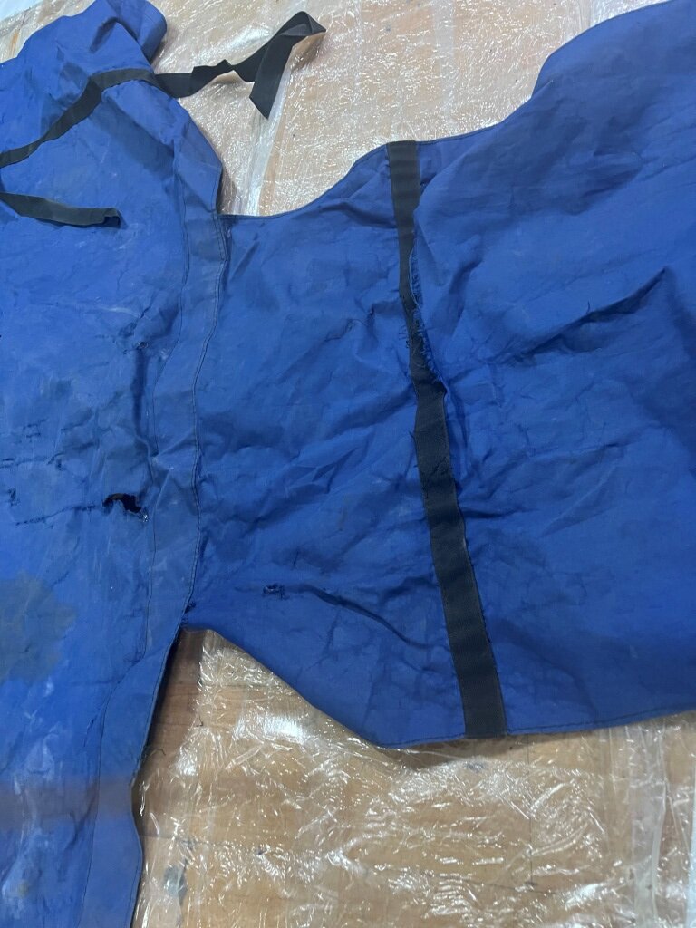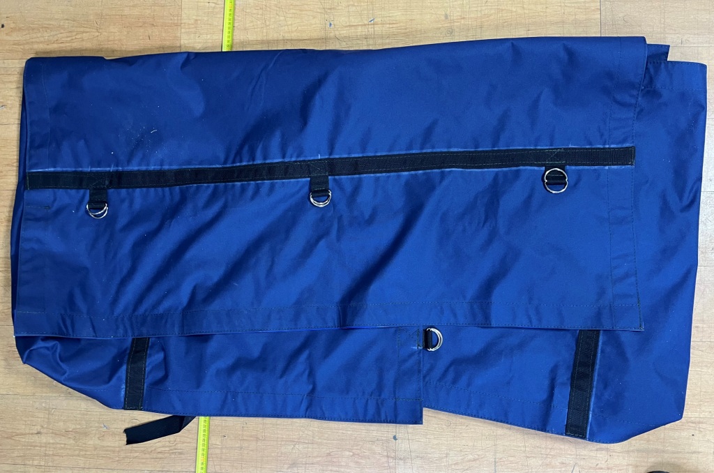 Всего за несколько дней старое изделие мы заменим на новое. Усилим основные места износа армированной ПВХ лентой, установим всю необходимую фурнитуру. Кстати, в своем производстве мы используем только проверенные ткани. В данном изделии применялась ткань - Оксфорд (темно-синий, плотность 900г /м2). Данная ткань обладает хорошими износостойкими свойствами, абсолютно не пропускает воду, легкая и прочная.