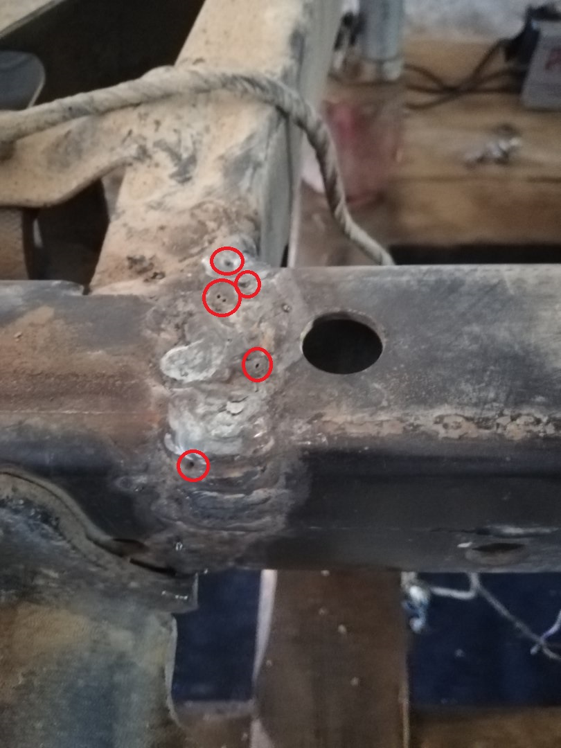 отмеченные красным места однозначно зачистить болгаркой и заново проварить. поры выходящие наружу приведут к появлению новой трещины. внимательно весь шов просмотрите, может еще нечто подобное найдется. Посмотреть вложение 253916