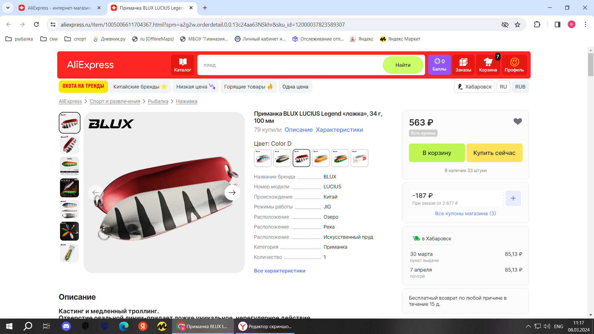 Получил свою пару блесен,Вот чего нашёл, но граммовка только такая Посмотреть вложение 390181