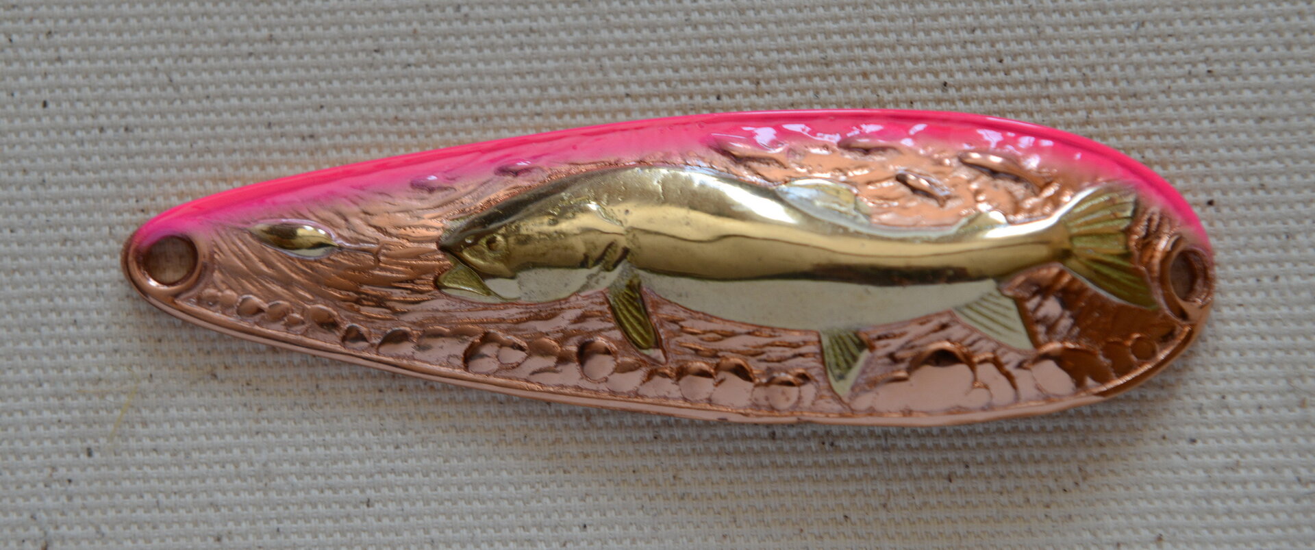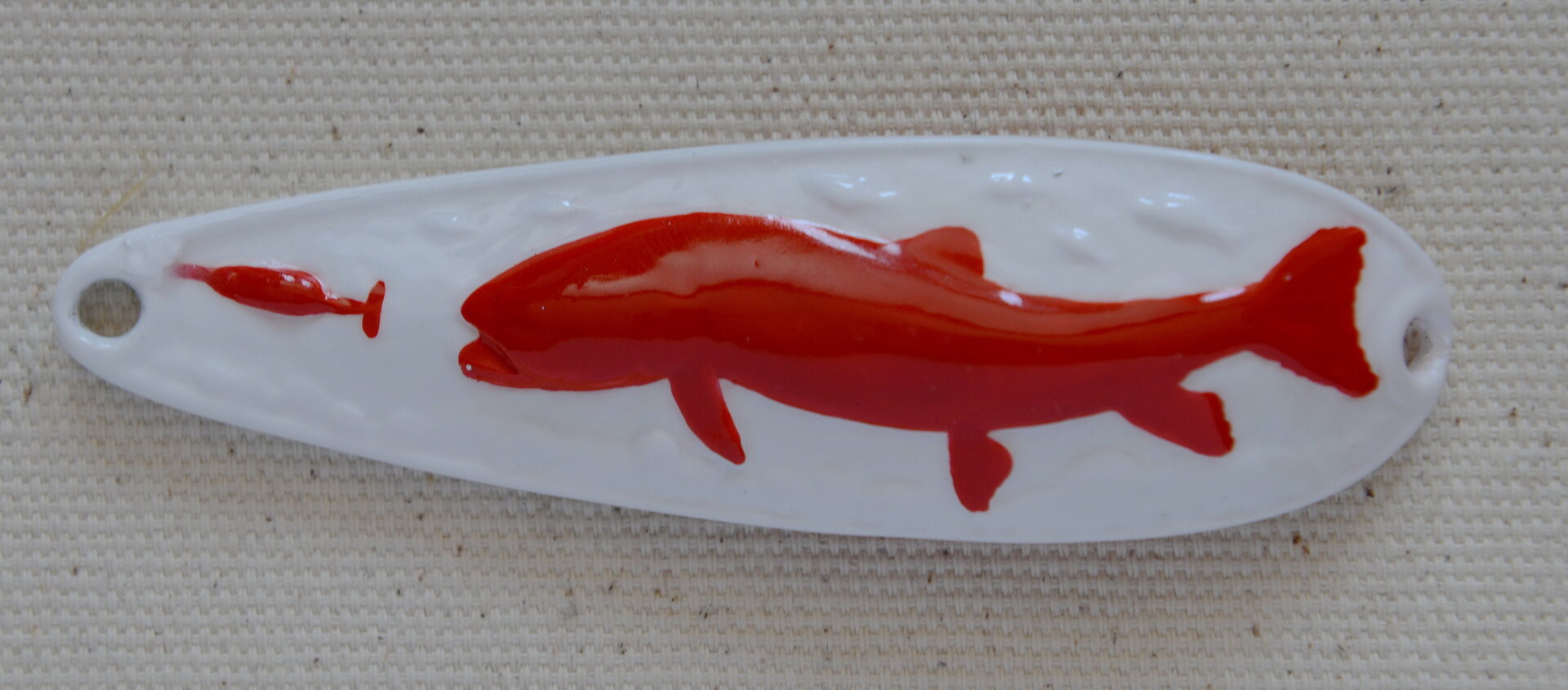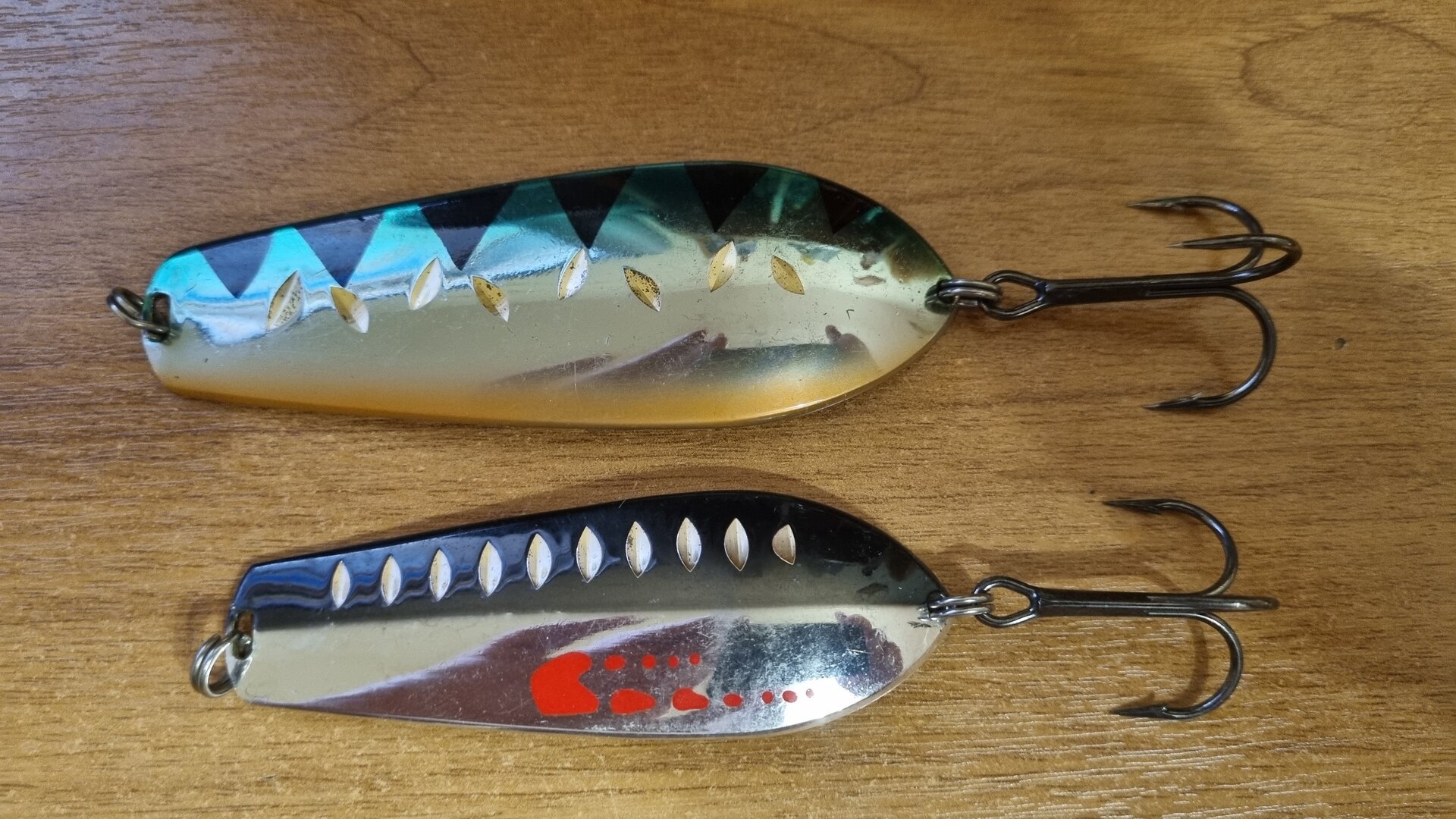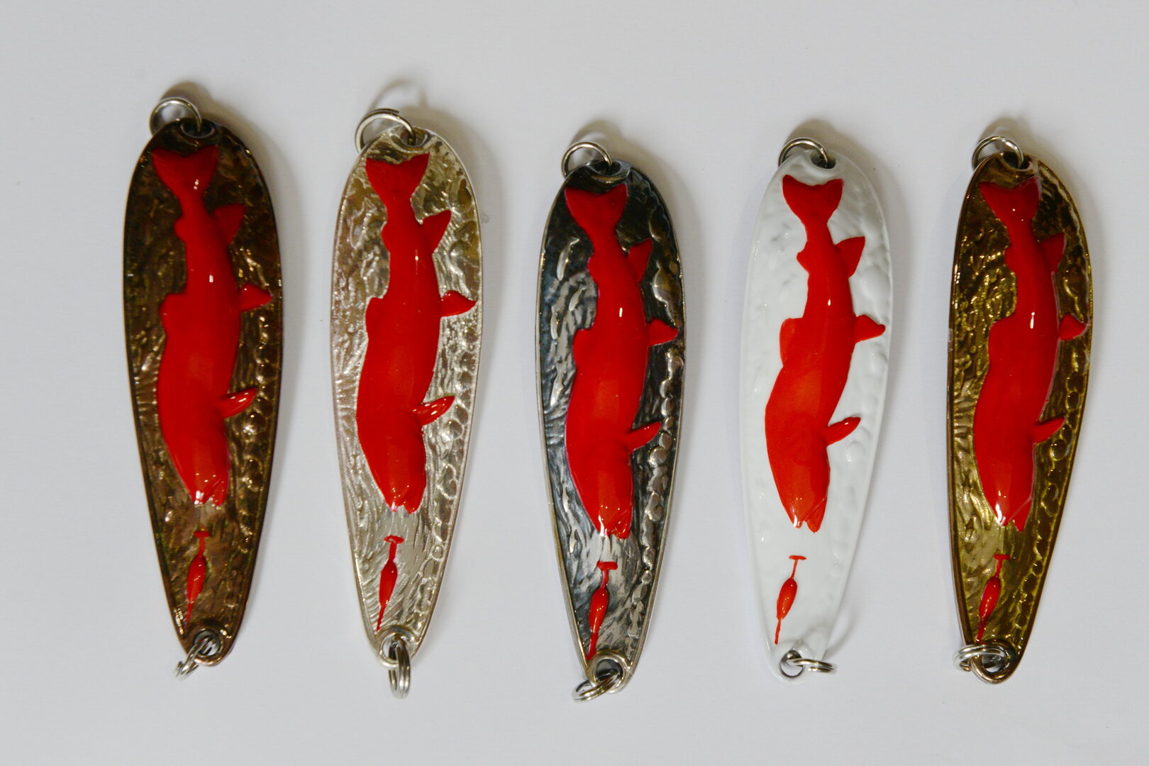 Нет. Работают идеально. Даже мыслей нет, что можно как нибудь улучшить. Ну может на некрупного тайменя сделать еще более легкую версию- грамм на 45. Да, блесны изготавливаются по очень сложной технологии, что дает возможность их красить в любые цвета. ( И поэтому они очень недешевы). Я например заказал партию белых блесен с красным тайменем См. фото. Эта блесна отлично работает в темную, мутную воду. Белое яркое серебро тоже. А вот в светлую воду нужно ставить темную медь и темное серебро.Фигассе. Респект. По итогу что то поправил бы?