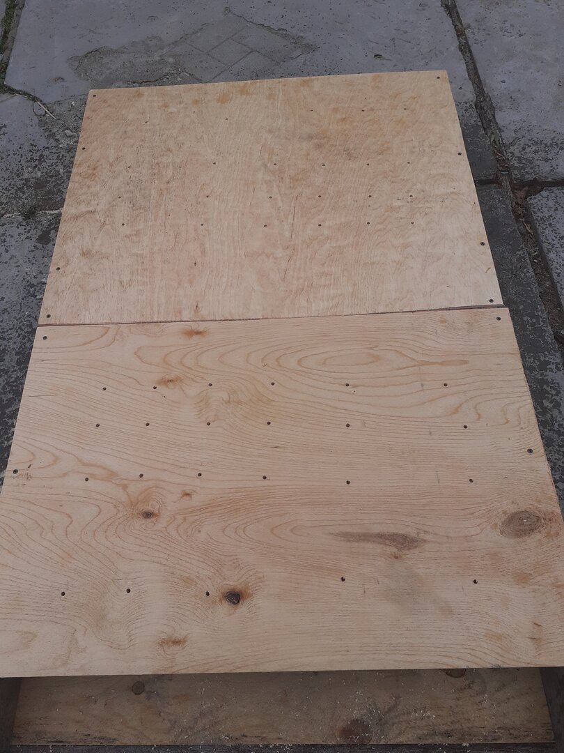 На перекрытие этой песни нет ничего, кроме фанеры. Есть ветроизоляция, можно (и правильно) перекрыть ей пеноплекс, но тогда не остается зазоров для "дыхания". Отказываюсь от нее, раскраиваю бракованные кривые куски фанеры (для щелей), те, которые раскроили 3 кружки медовухи из подвала, вместо меня, позавчера. Перфорирую их отверстиями как черт послал.