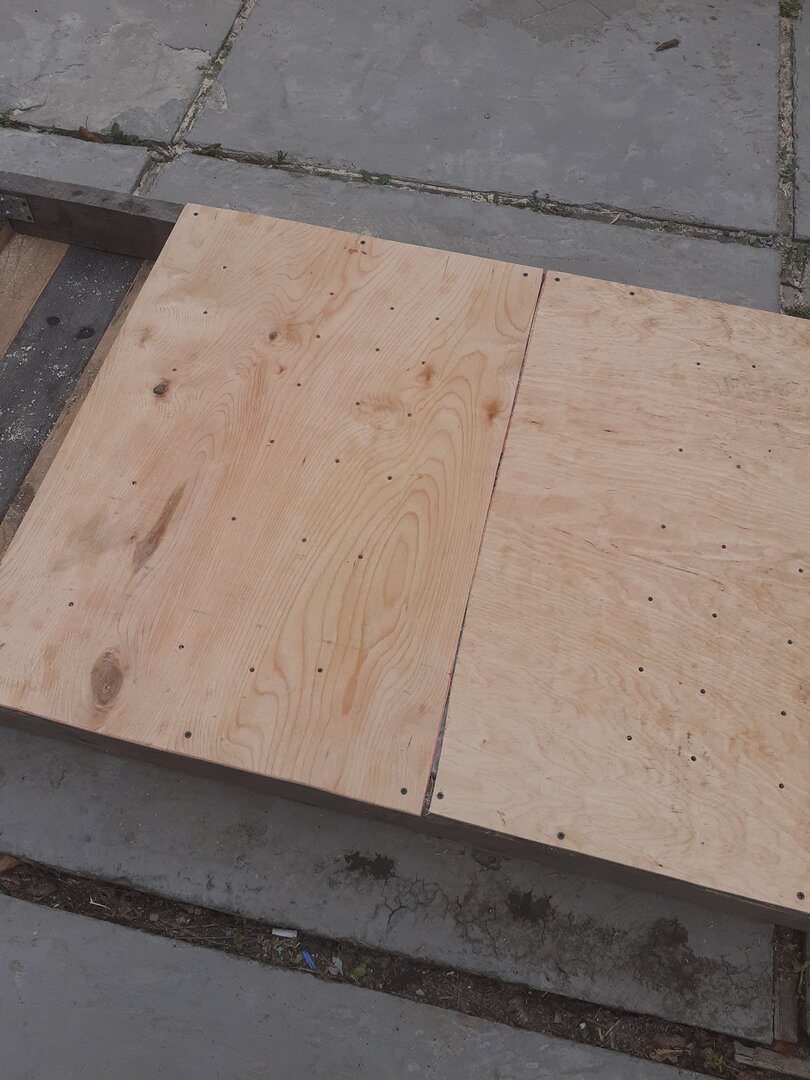 После вчерашней взаимной примерки стен, нашиваю фанеру комнаты на рамы окончательно.