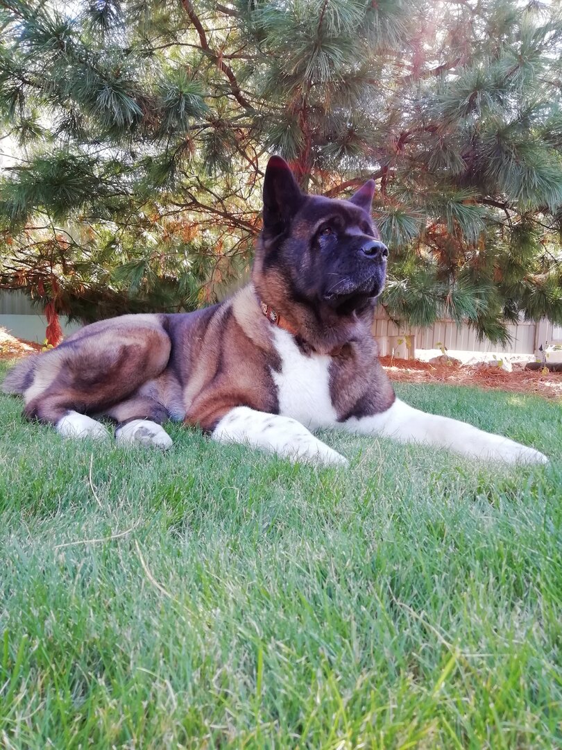 Роскошная собака на роскошном же газоне.