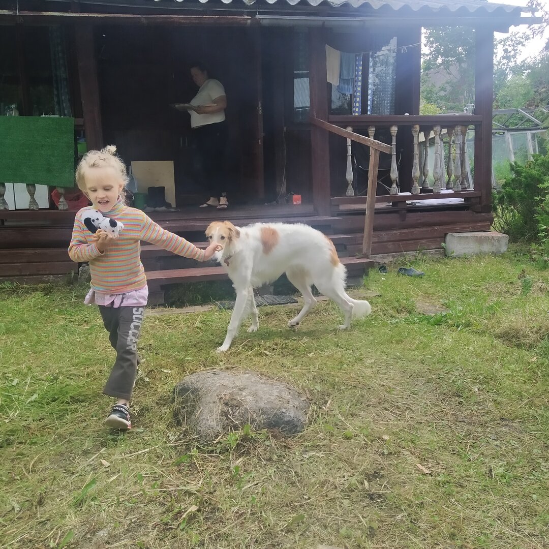 Сука соседская Юта, откормленная зимой и весной на наших харчях, выдала выводок. Который медленно, но верно переселяется к нам, ввиду постоянного отсутствия соседа. У них два папы, которые тоже есть в кадре. Этот выводок их по очереди загоняет на будки, поскольку больше от них спастись негде. Там же теперь папы и едят.