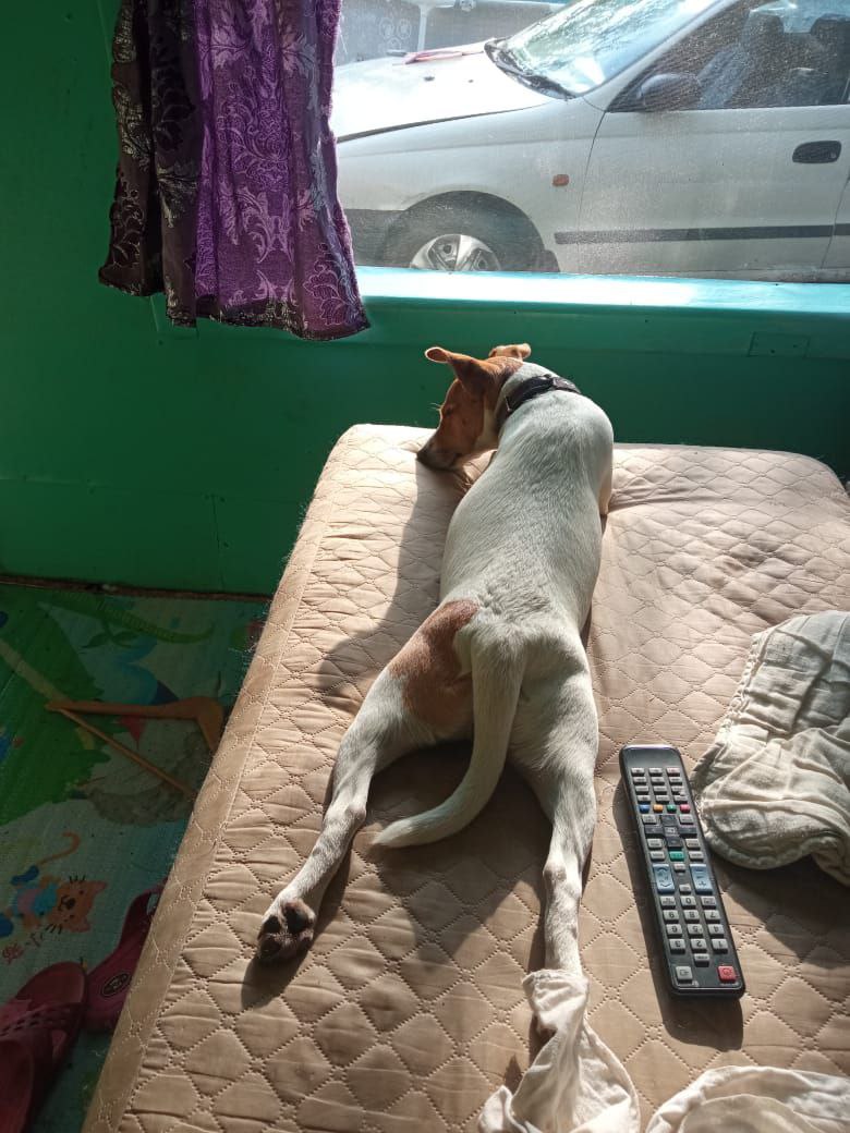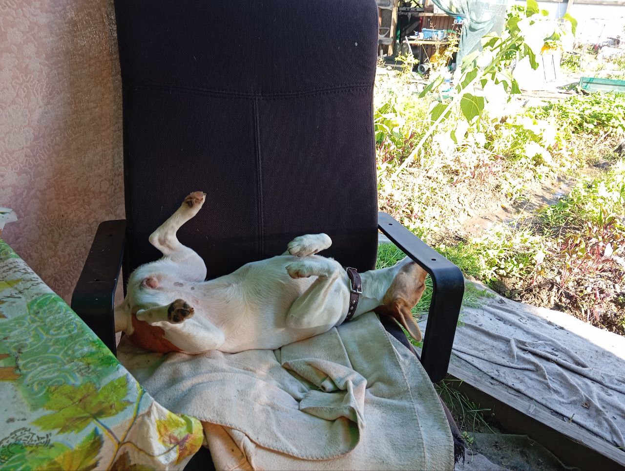 Отдыхаем от трудов праведных. Как раз за птицами набегался. Можно полдня теперь дрыхнуть.