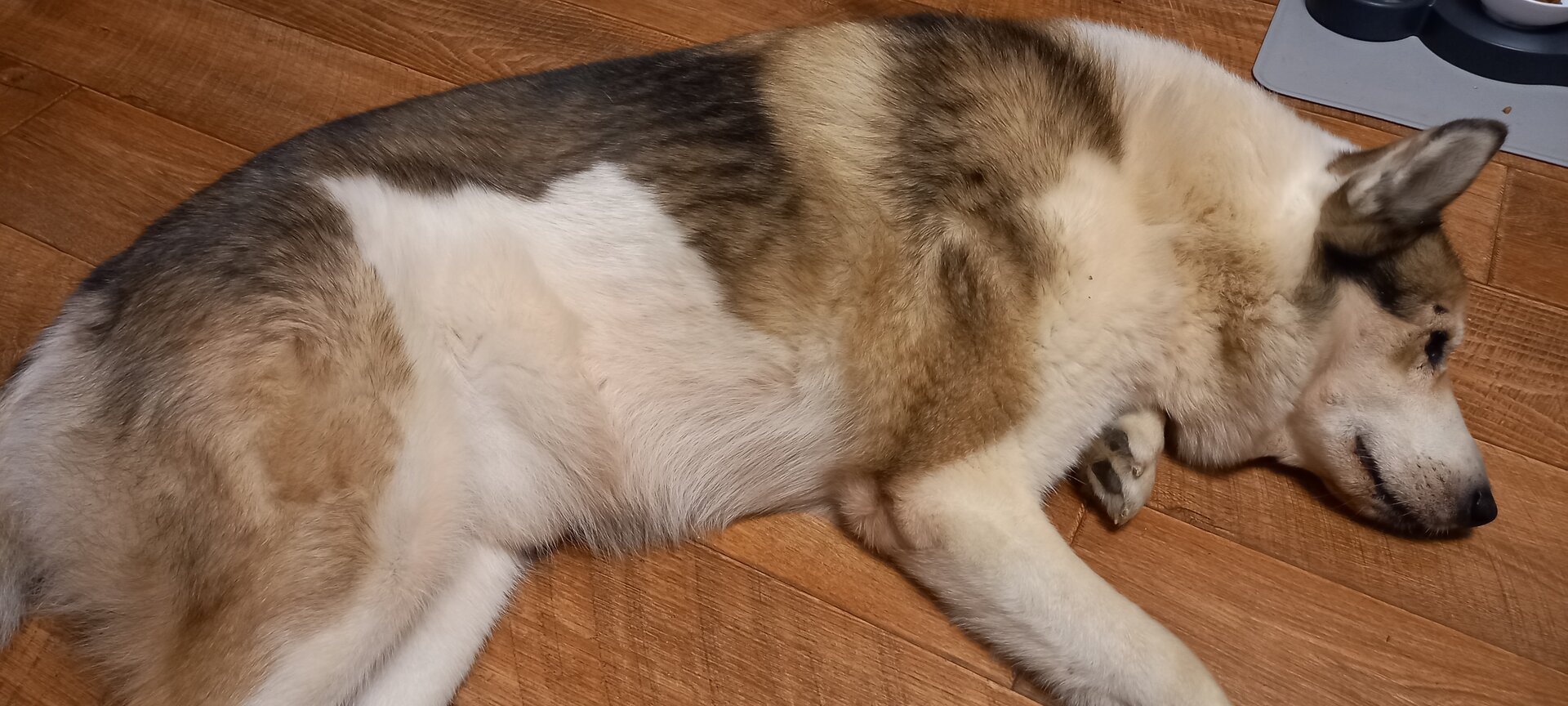 Да, всуднула немного, корм поменял. Но шерсть не ровная, линяем.)))А я и смотрю - смирная какая то и похудела вроде...