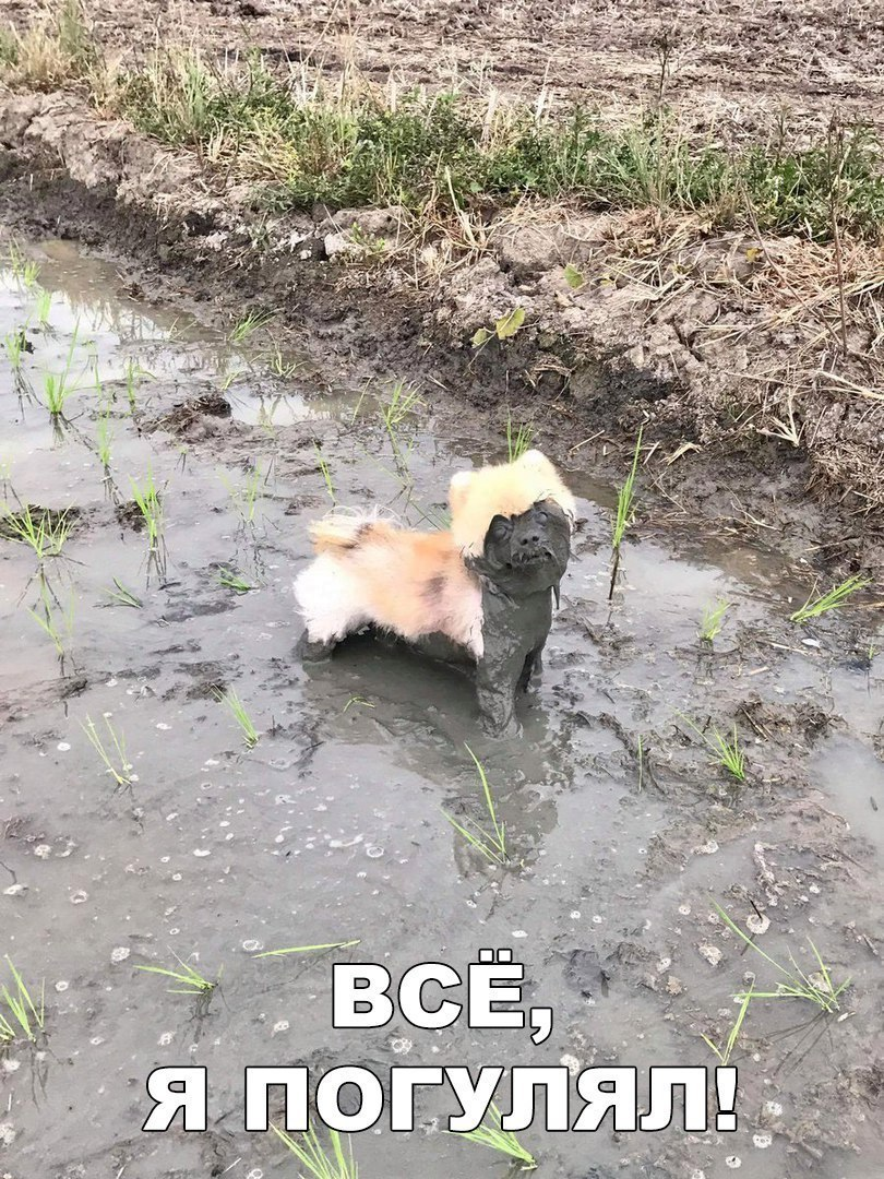 Вот это чудо стоит в оптимистичной позе, хвост трубой, не смотря на то, что утоп практически в рисовом чеке...Ну говорили про какую то пшикалку от грязи.