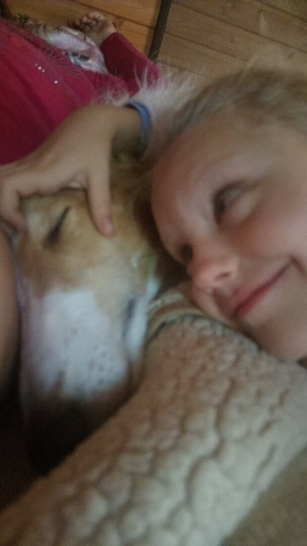 .. вообще-то Афине не везет с другими собаками. Она девочка добрая, можно сказать любвеобильная, всех любит, со всеми хочет дружить. Особенно она любит детей. Лишь заслышит детские голоса или увидит ребенка, все, она забывает обо всем на свете. Она садится, ложится, отчаянно виляя хвостом, прижав уши и улыбаясь. В нашем дворе и на катере, едущем на Тунгуску ее уже все дети знают т потому безбоязненно идут к ней. Да и взрослые, не имеющие предубеждения или страха перед собаками, спокойно и доброжелательно реагируют на ее желание поздороваться.