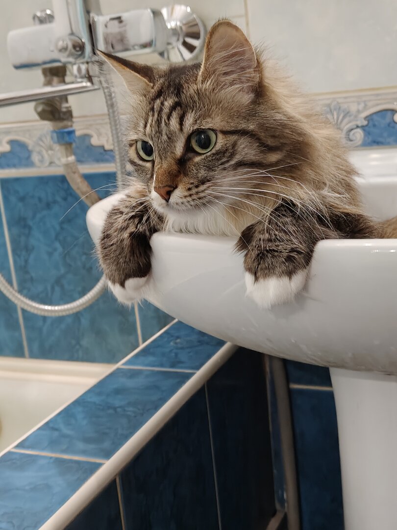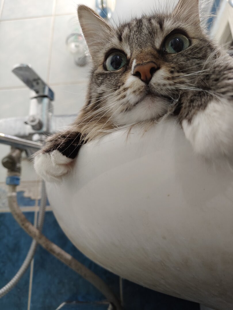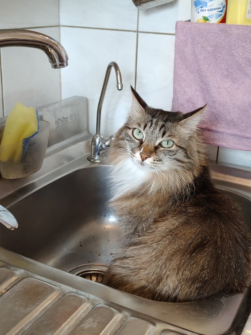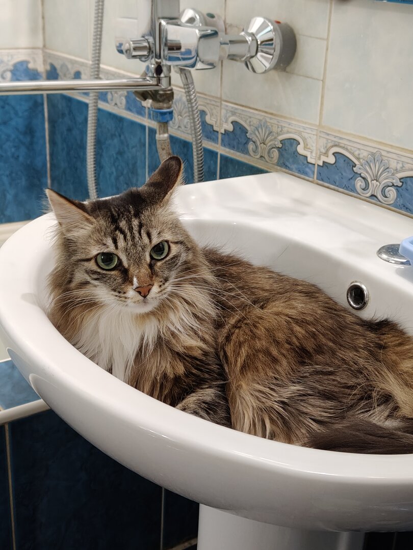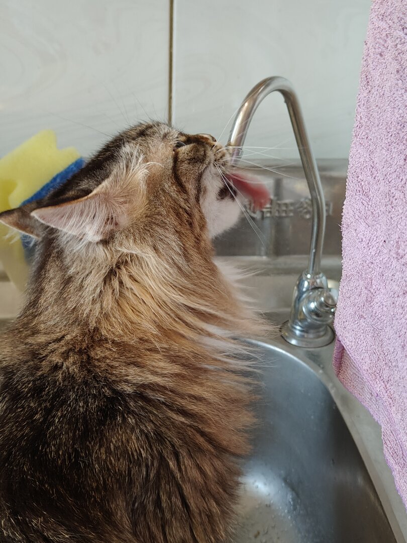 Да, кстати, масть - как у Люси. И она тоже очень любит ритуалы. Пьет из под крана, требуя его открыть, противным мяуканьем. Но! Открыть кран? Я вас умоляю! Это вообще второстепенно! Кошка будет ходить по краю раковины и мяуканьем требовать похвалы и ласки. Иначе к водопитию не приступит! :E009: