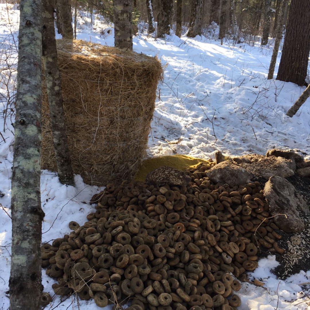 В прошлом году на прикормочную площадку поставили рулончик свежего сена, и очень горевали ЧТО никто его не ест! Искали подвох. В этом году поставили высококалорийный рулон (выглядит очень аппетитно), и ВОТ вам результат: