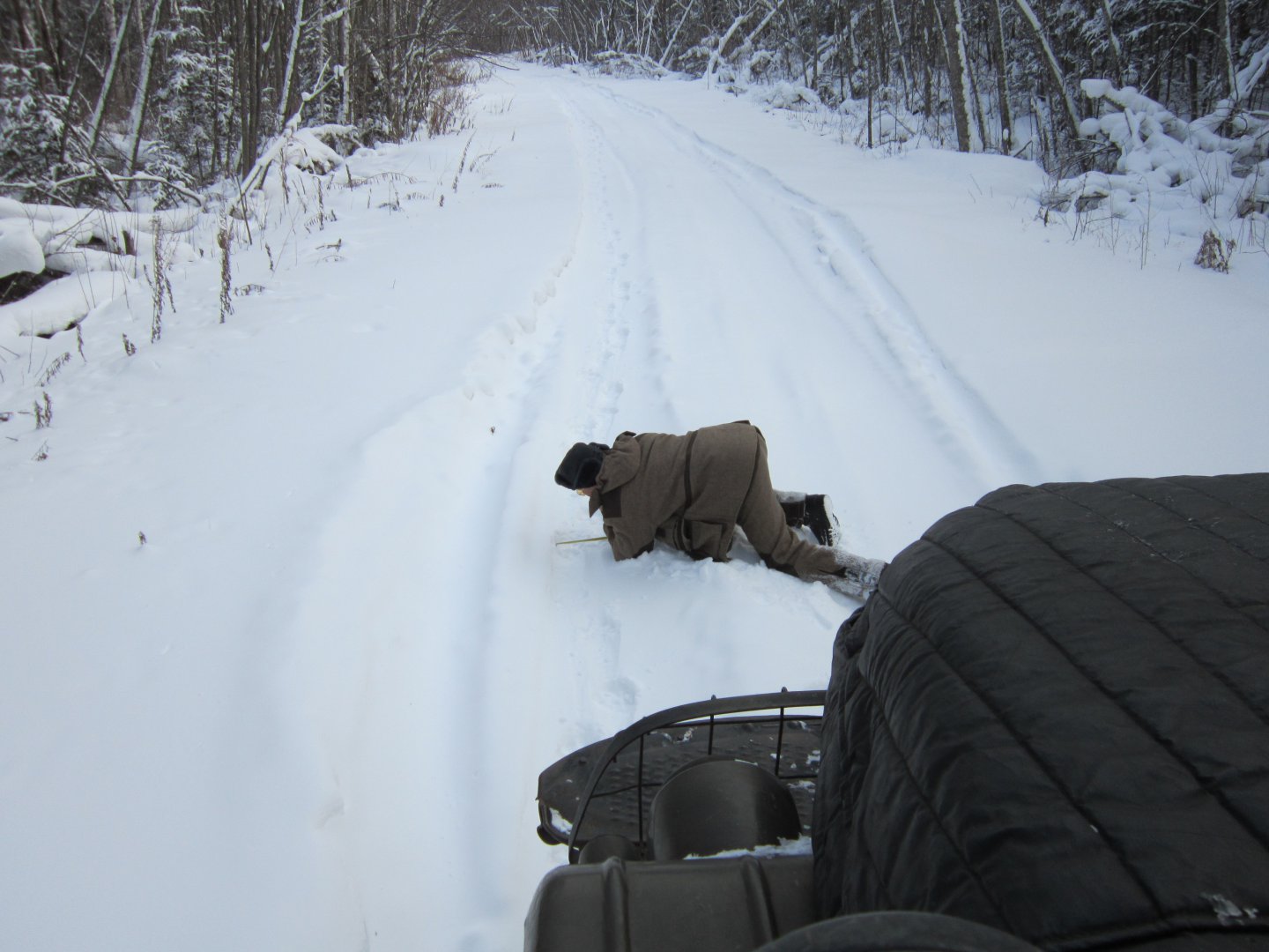 Тундра не влезает в колею. Пришлось новую топтать.