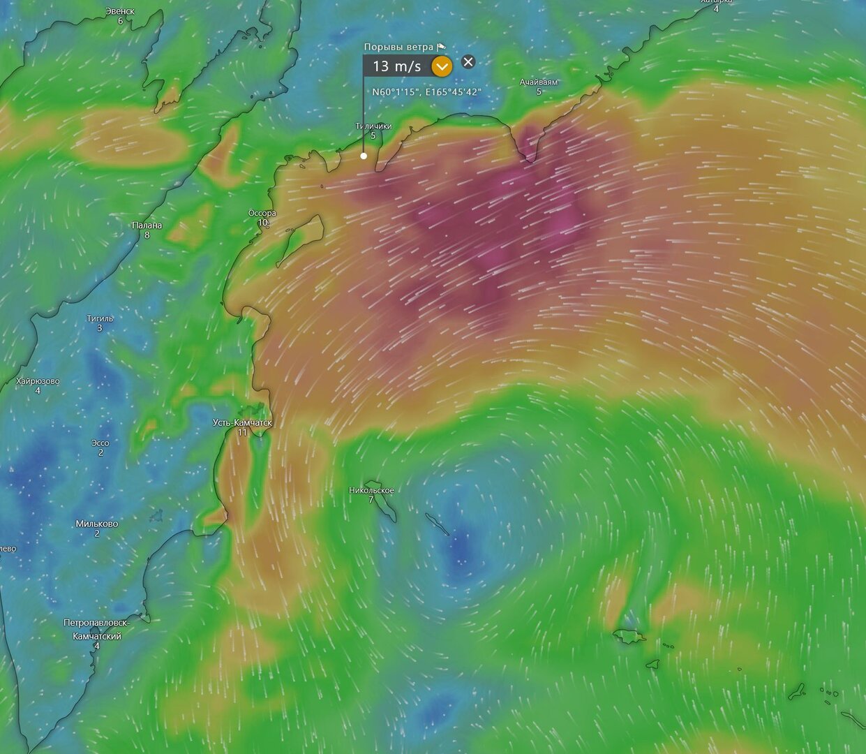С 1 августа наша команда пережидает шторм в селе Тиличики. Это центр Олюторского района Корякского округа. Стоянка не была запланированной, но волей судьбы мы здесь минимум на 5 дней, а может и более. Зависит от погоды — по последним данным за действующим циклоном идёт уже следующий.