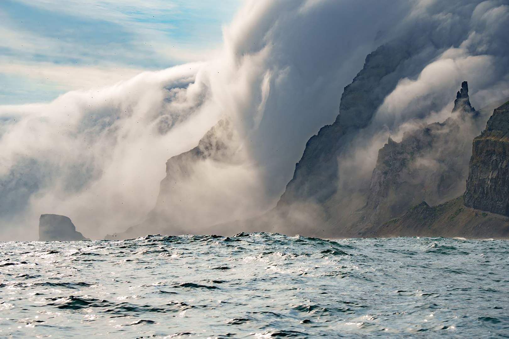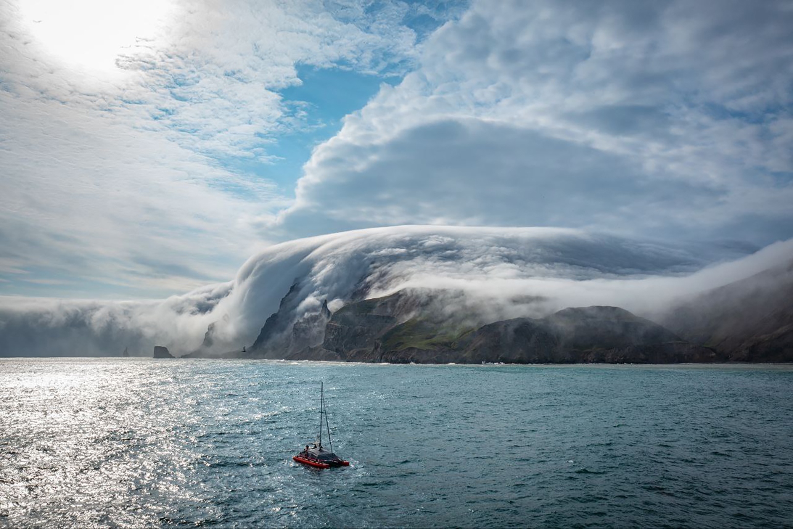 Сегодня ходили в соседнюю бухту, днём была хорошая погода на несколько часов, снимали китов, завтра хотим перейти в эту бухту и там дожидаться конца штормов.