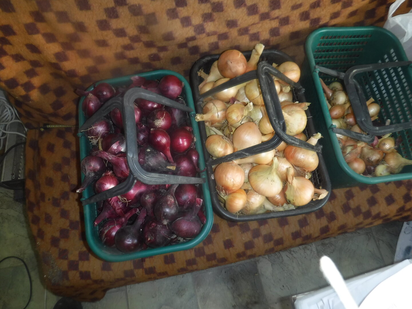 Лук переехал на зимние квартиры.В этом году порадовал синий, будет с чем талу есть.Так что в этом году луком обеспечены на 100 процентов.