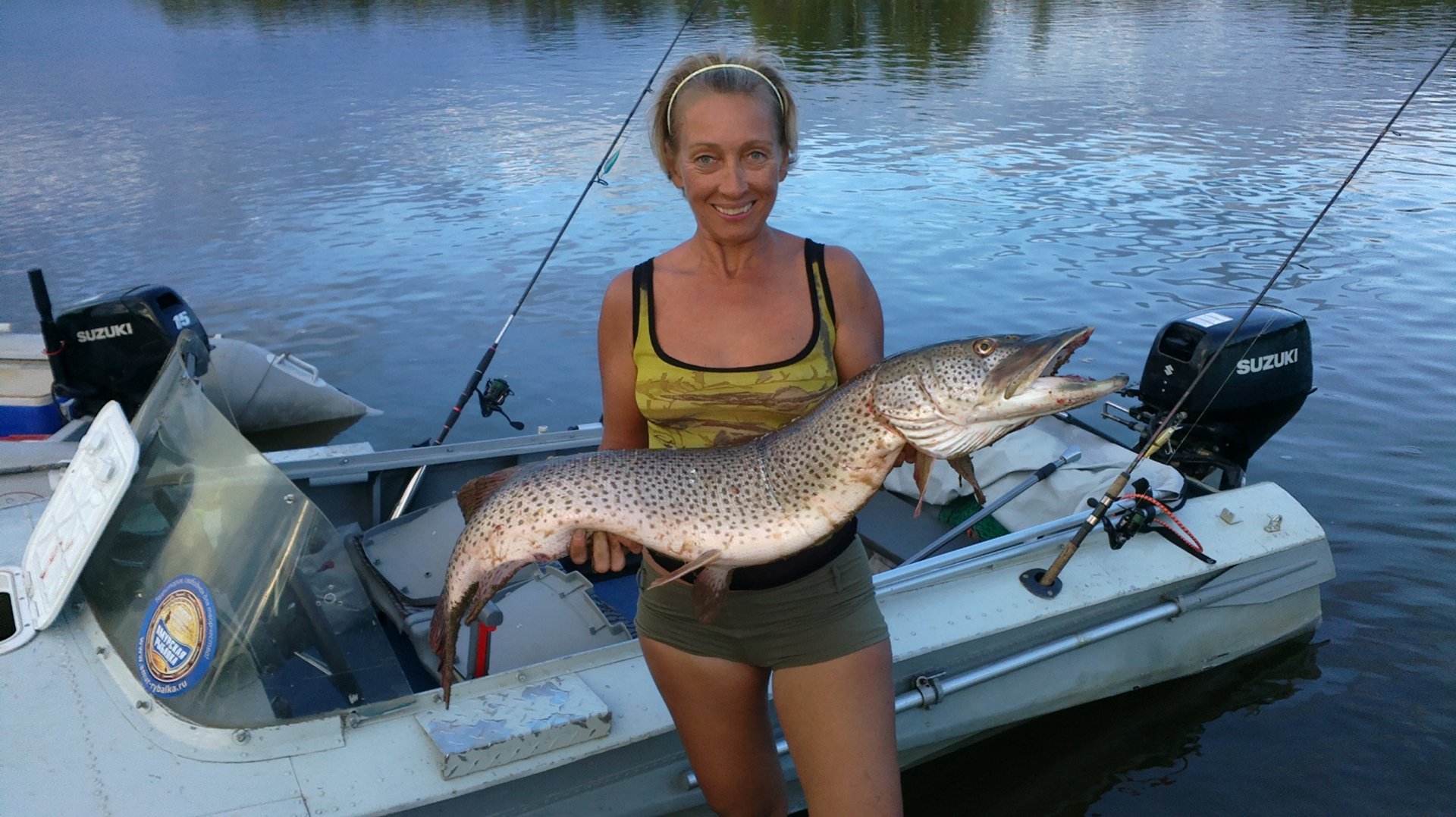Думаю будет справедливо для дам отдельную номинацию по трофею учредить.Шестого сентября в Тунгуске была поймана женой Мариной, щука весом 11кг. и длиной 125см. Рулетки с собой не было мерили веревкой и дома рулеткой. Фото сделано телефоном.