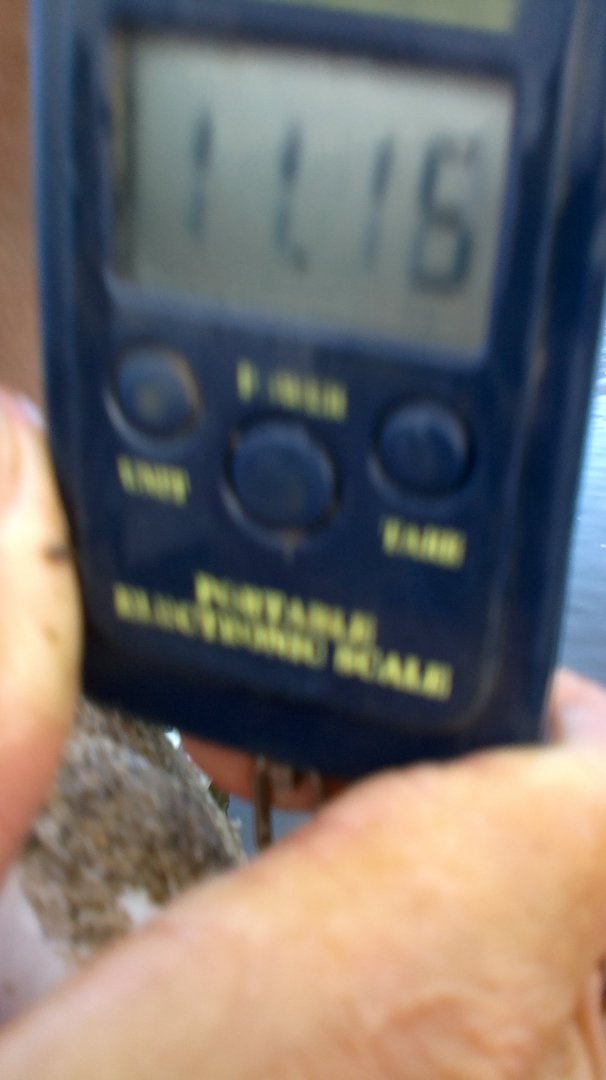 Вес 31,5 кг, длина от начала хвоста до губы 150 см.