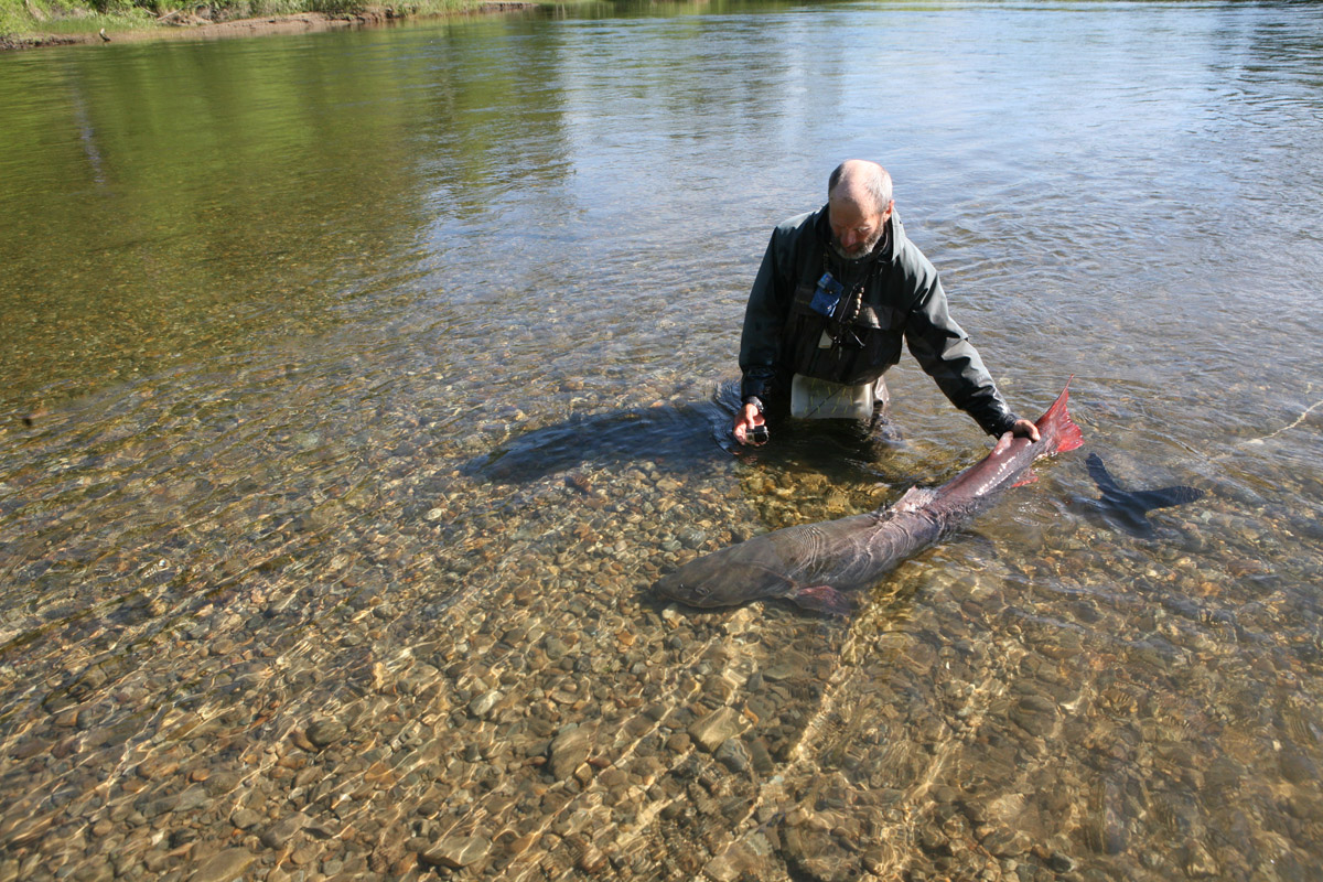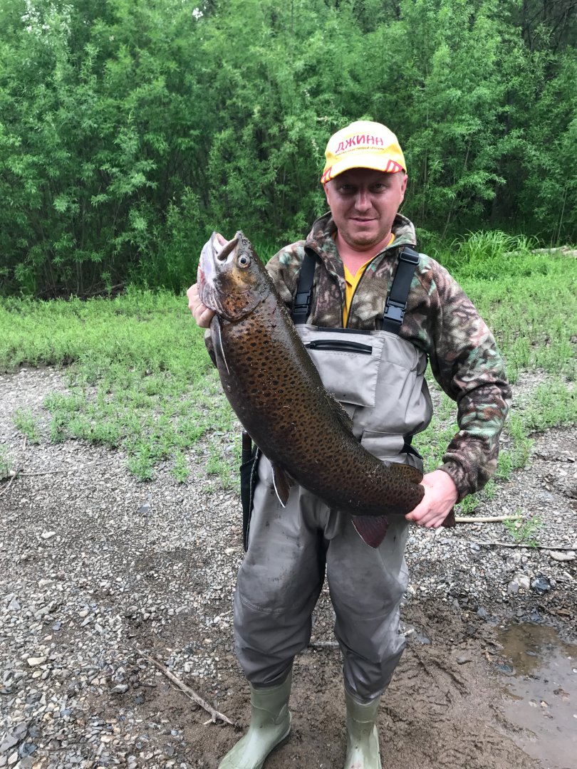 Таймень пойман на муху, река Тугур, июнь 2017 года. Полная длина 145 см, длина до конца средних лучей хвостового плавника 143 см, обхват 69 см. Вес по формуле 30,06 кг. Взвешивание показало 29,93 кг. Рыба такой длины осенью обычно имеет вес не менее 36 кг, а нередко до 40.