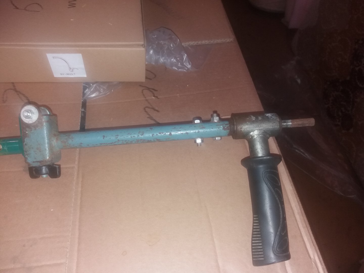 Переходник от Higashi, обрезал кусок от старого бура и приколхозил все это дело . По тонкому льду бурю с обычной ручкой, по толстому ставлю переходник, меняется в течение 2-х минут