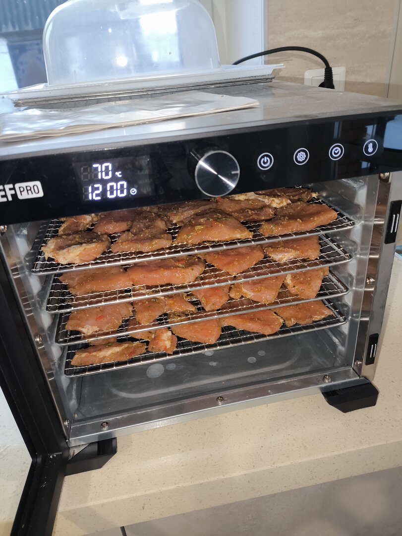 На противни и 11 часов при 50 С в сушилке.