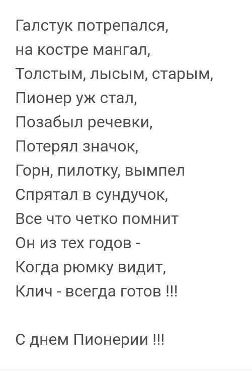 За день пионерии накатил... Грех было такой день в пятницу сухариться. :P008: