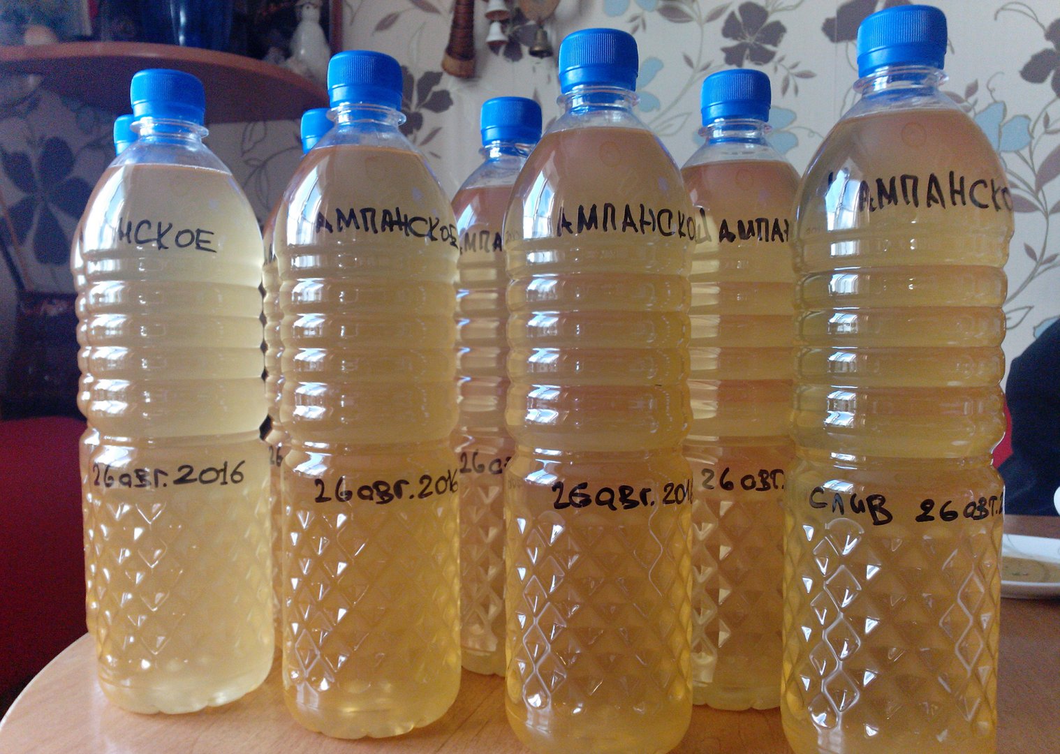 Интересно с шампанским повозиться. Правда есть тонкости с порционными добавлениями сахара, но...в целом нормально. Единственный момент - брожение почти встало где то на 20-й день. Но, думаю это нормально, а одной из причин вижу то, что в закладке было не так уж и много листьев...И еще - не понял на какой стадии в шампанское добавляется изюм...В рецептуре вроде как есть он.