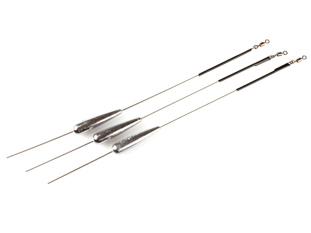 Грузило. Некоторые производители выпускают для отводного грузила специальной формы - вытянутые, изогнутые, со смещенным книзу центром тяжести (так называемые «Бананы»). Если встретите их в продаже - приобретите хотя бы пару пачек, лишними они в любом случае не будут. Такие грузы практически не цепляются за донный мусор, в то же время, обеспечивая необходимую дальнобойность оснастки. Если же нет, вполне можно пользоваться обычными свинцовыми «каплями» с вертлюжком, которые встречаются в магазинах гораздо чаще. Летят они тоже неплохо, но, к сожалению, достаточно часто застревают клином между камнями, в корягах и т.д. Бороться с этим сложно, так что придётся просто смириться с незапланированными потерями грузил при ловле на участках с захламленным дном.
