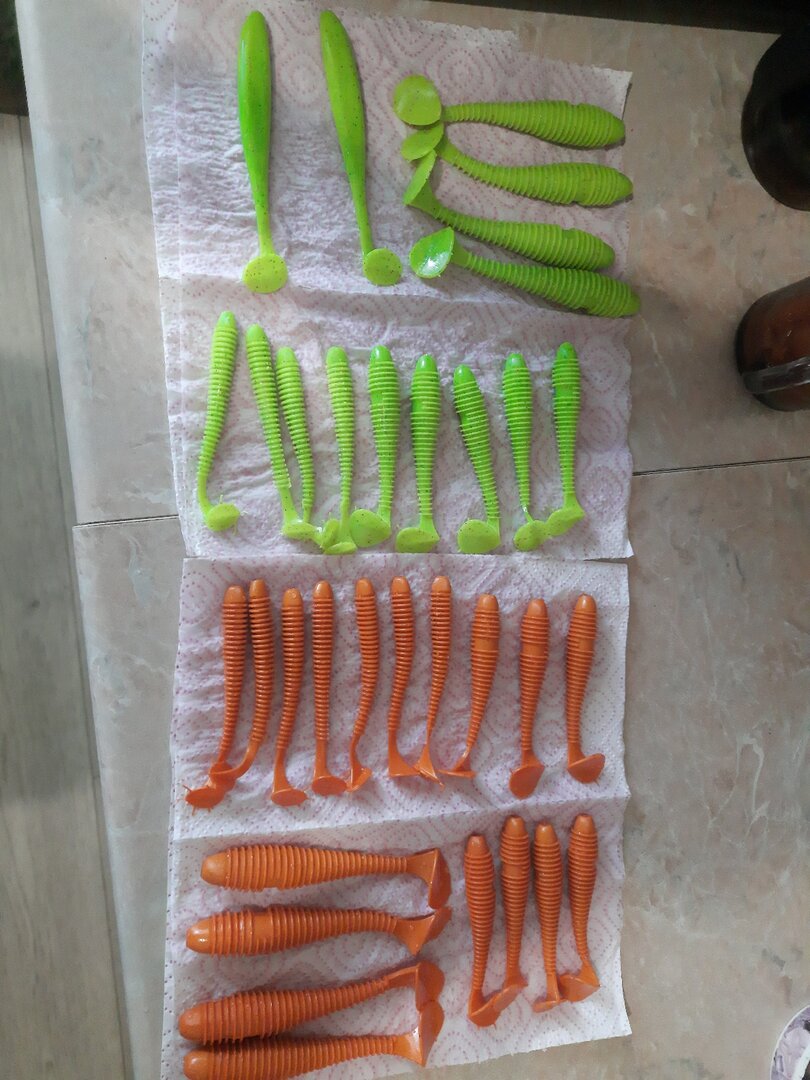 Силикон лью сам. Все расходники, а это Силикон, формы,шприц,пигмент и атрактанты брал на сайте купиджиг. Силикон многоразовый. Теперь безхвостые приманки идут в переработку. Вторичная перегонка силикона достойного качества получается. На нижнем фото вторичка. На верхнем первый отлив.