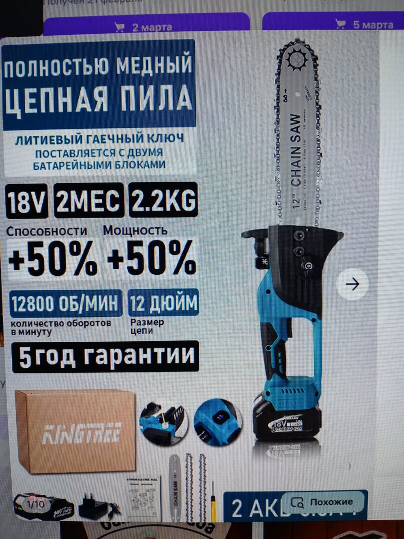 Вчера получил большую электричку с шиной 12 дюймов. И с мощными акумами 5 ампер. Пила очень легкая, максимум 2.5 кг. К удивлению пилит хорошо и листвяк и березу, сантиметров 20 толщиной. Много не пилил, но при втором запасном аккумуляторе думаю ее хватит на недельный сплав. В общем бензопилу при небольших объёмах она заменит. Это при цене 4.500 руб!!! Ставлю ей если не пятерку, то 5 с минусом точно. Вот такие выводы.