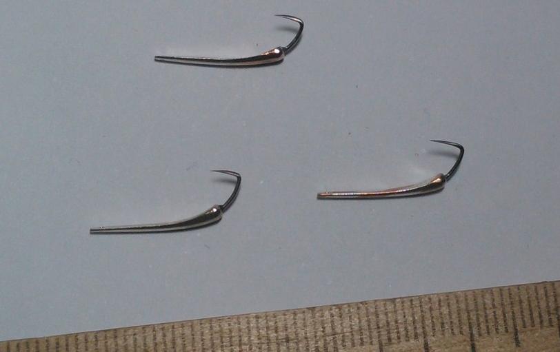 . Раньше когда-то нечто подобное изготавливал,но навыки прдзабылись,так-что начинал практически с нуля.Провозился с этими двумя пол-дня.да и назвать их завершенными нельзя-еще шлифовка-полировка и проч. Дл. у них-13мм+гак.