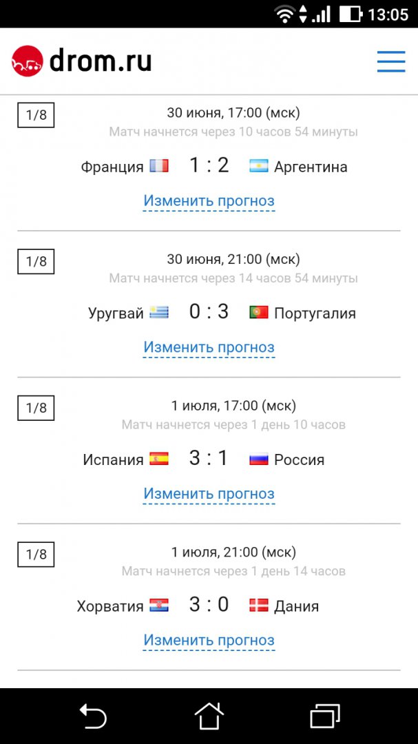 Давать прогнозы не благодарное дело , Уругвай - Португалия 2-1 вопреки всякой логики , как и вылет Германии из группы, поДу цитрамона приму.Пока что в лидерах идёшь!![]()