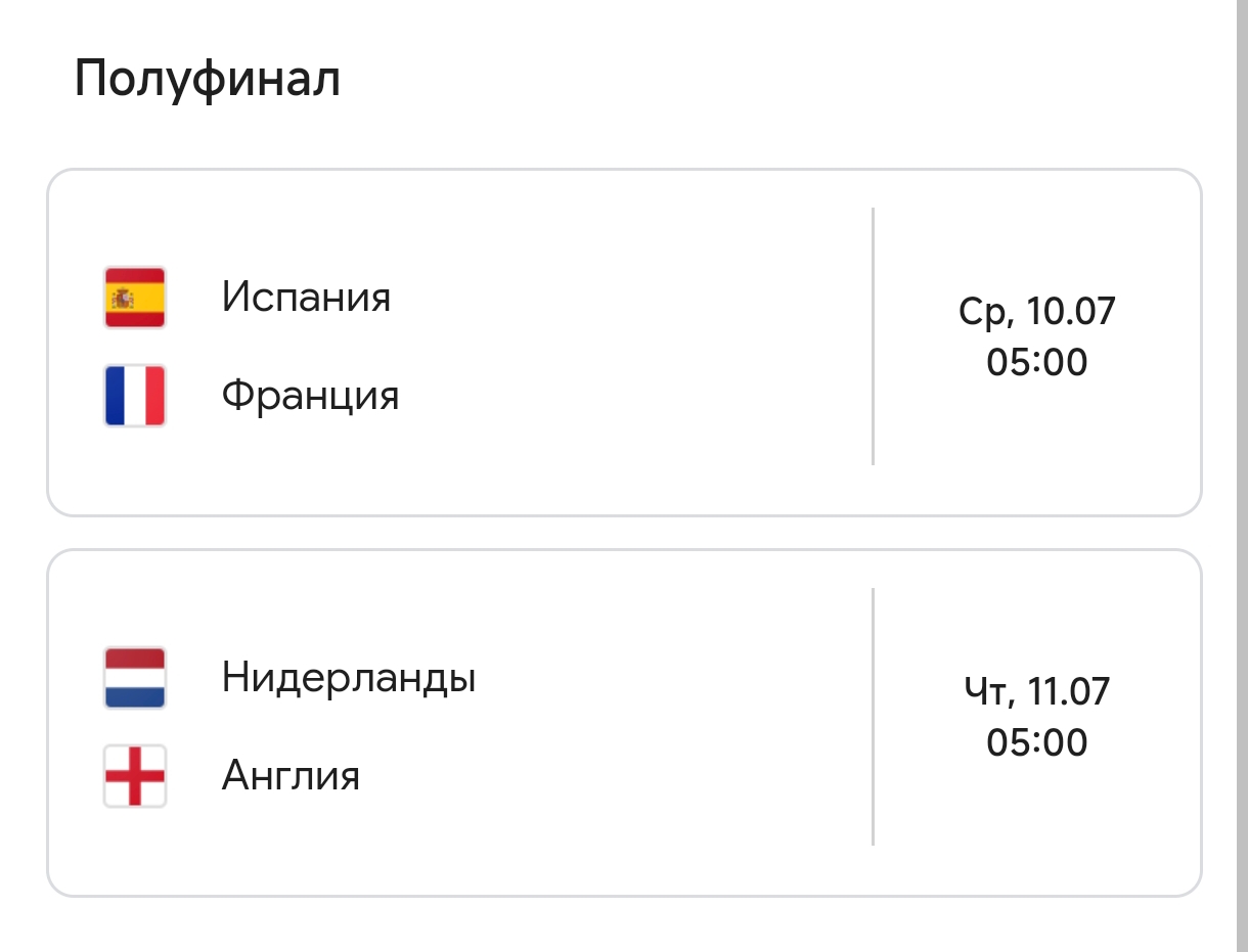 Сегодня оба матча классные! И если бы полуфинальная пара сложилась из сборных Швейцарии и Турции, то это было не менее справедливо чем пара Англия - Нидерланды.