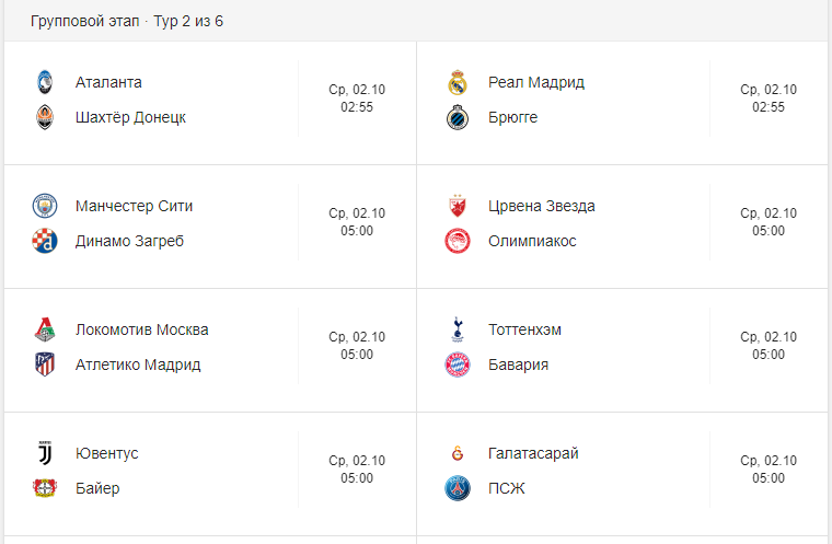 Дык второе октября вроде не завтра?...завтра утром 8 матчей, послезавтра ещё