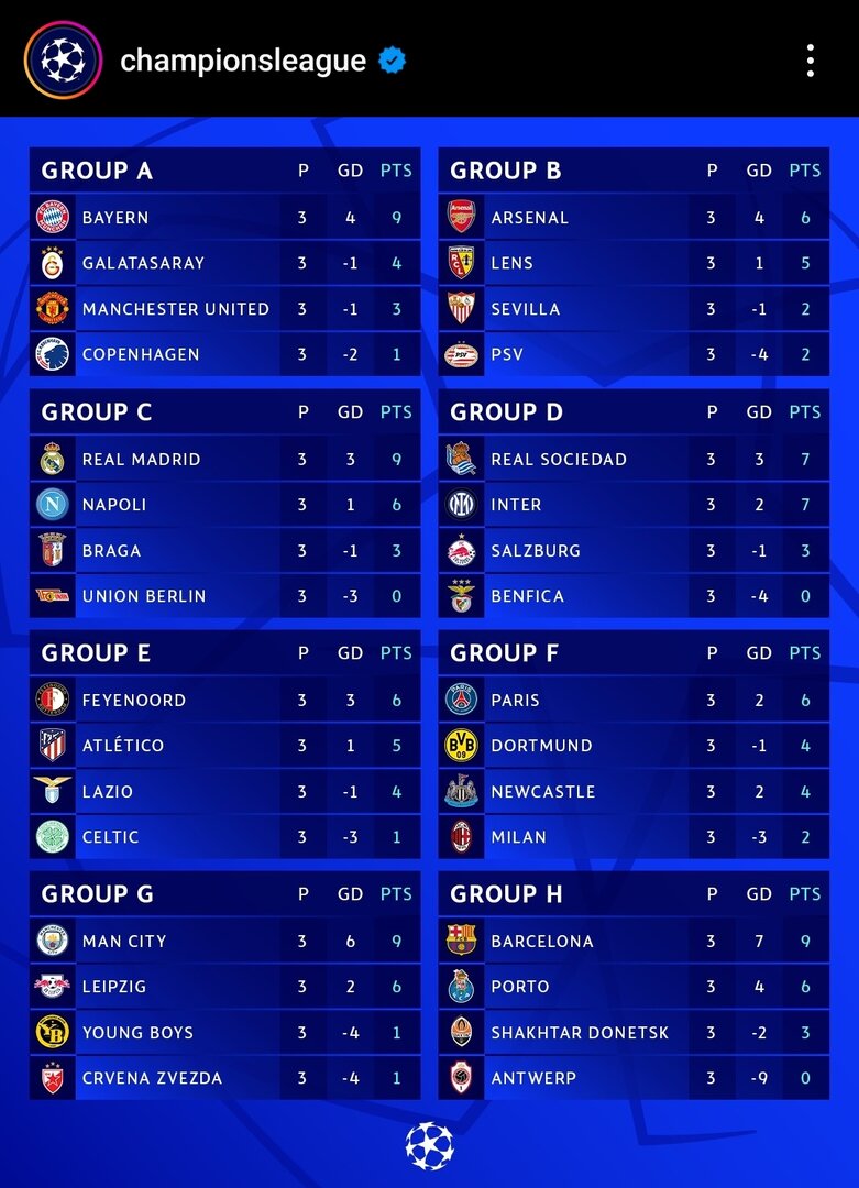 Седня 3-ий тур доиграли, особых сенсаций нет, надо таблицы смотретьЗавтра продолжение 3-го тура группового этапа