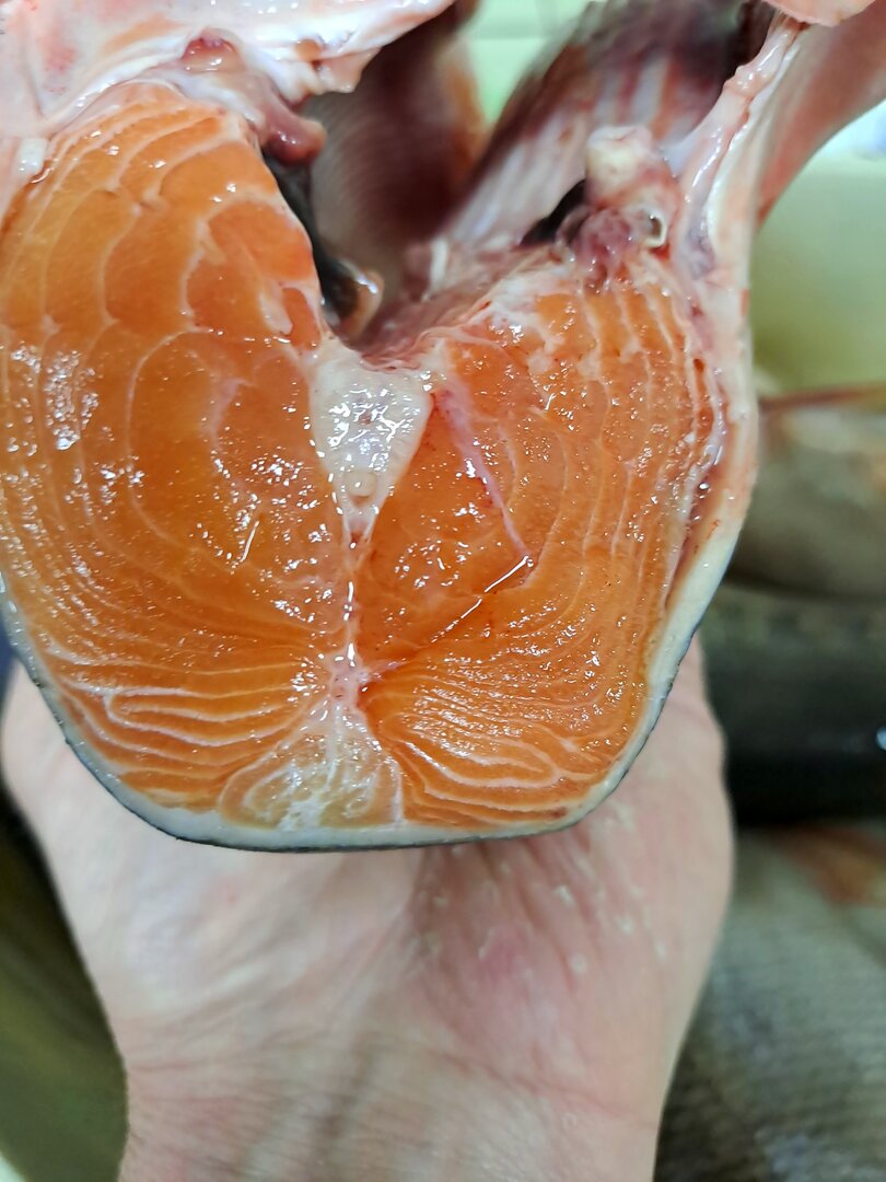 У меня Батя специально для тетки в Белогорск с Сахалина привози головы соленые, она от них просто балдела. А потроха часто в огород закапывали под картошку, правда мишка иногда перекапывал его. А так в основном потроха в автоклав шли.