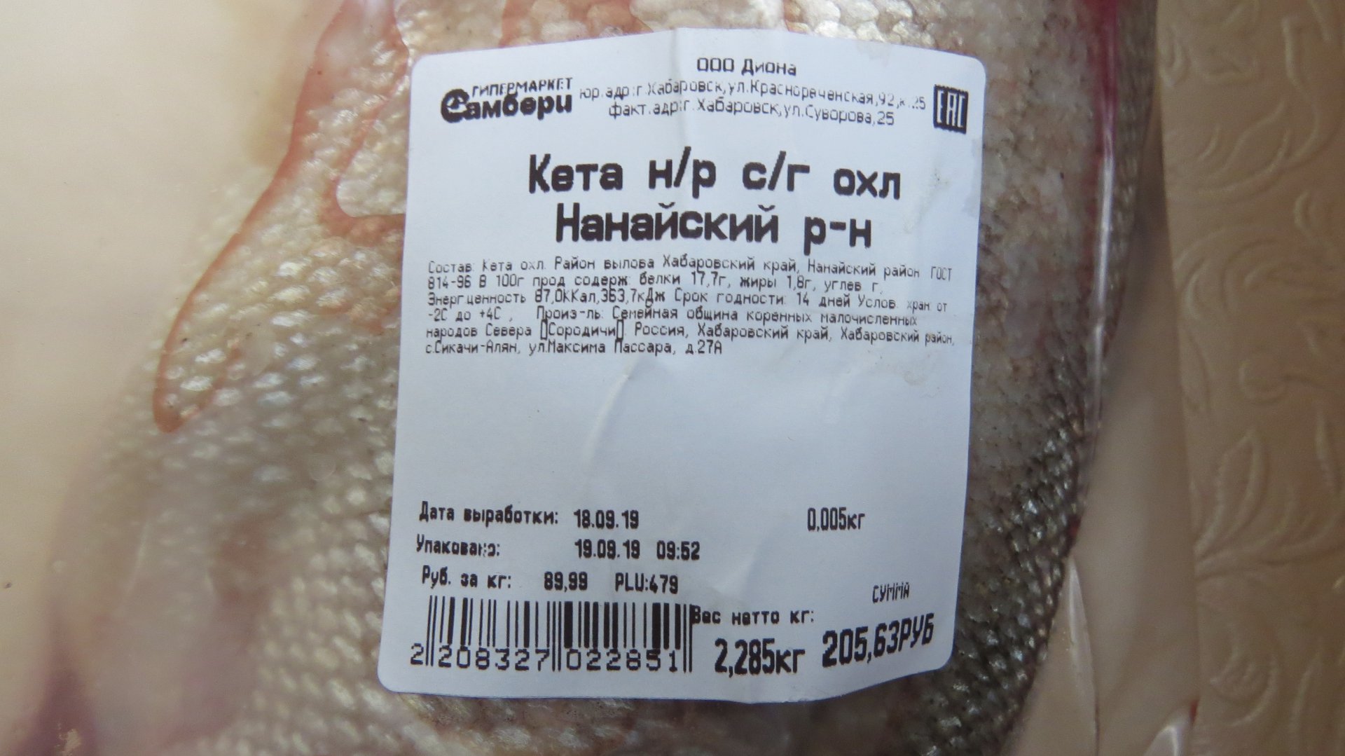 Возможно эта семейная община рыбачила на участке в низовке, чтобы что то поймать.. И рыба смотрю ещё не раскрашенная, серебристая. А при отгрузке ставит свой юр.адрес...на ценнике Сикачи-Алян однако ...