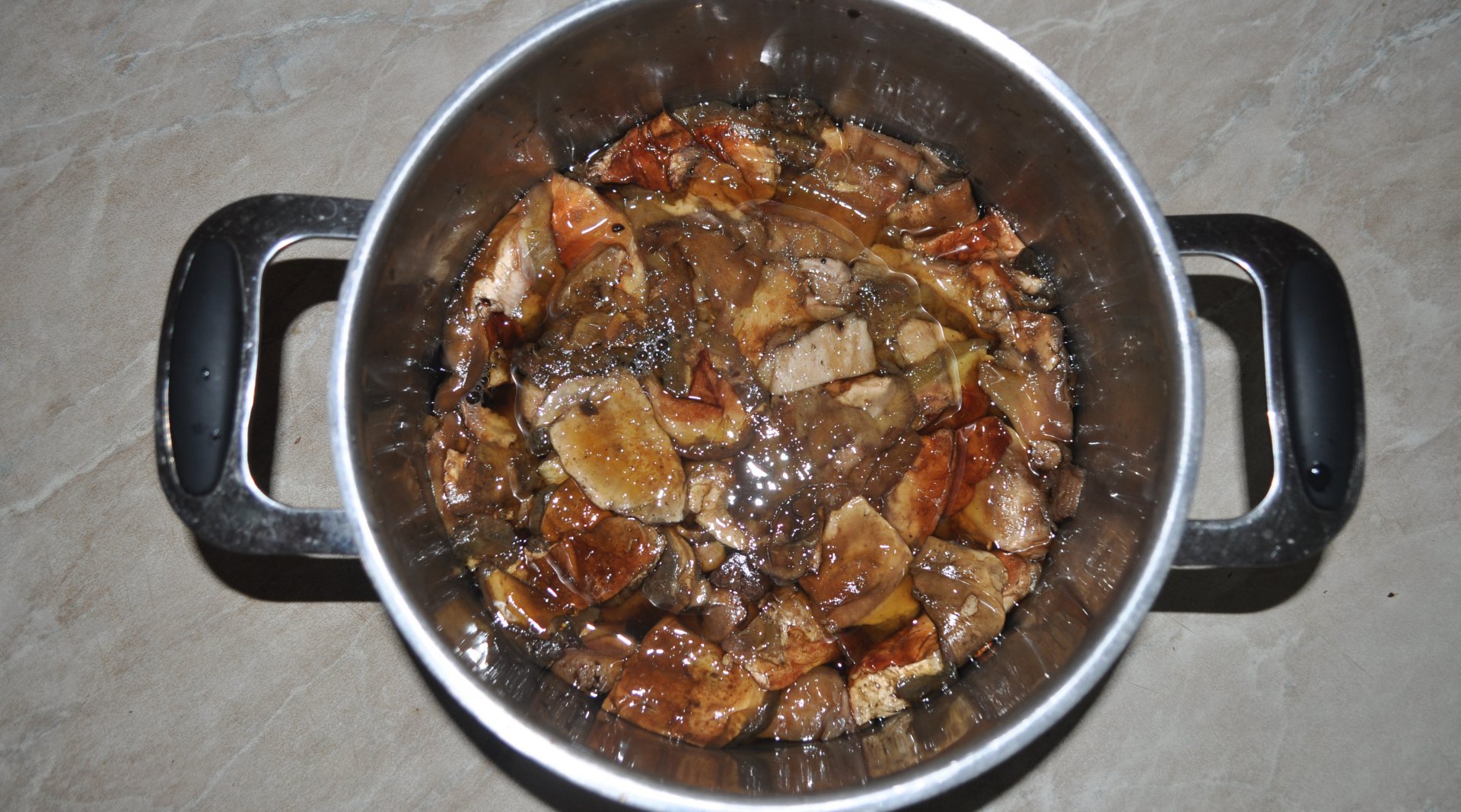 Ингредиенты. Грибы белый крупный 600 г, соль 2 ст/л, уксус виноградный 3 ст/л, 2 луковицы, 3 зубчика чеснока, имбирь, гвоздика 2 шт, лавровый лист, вино белое сухое 250 г.