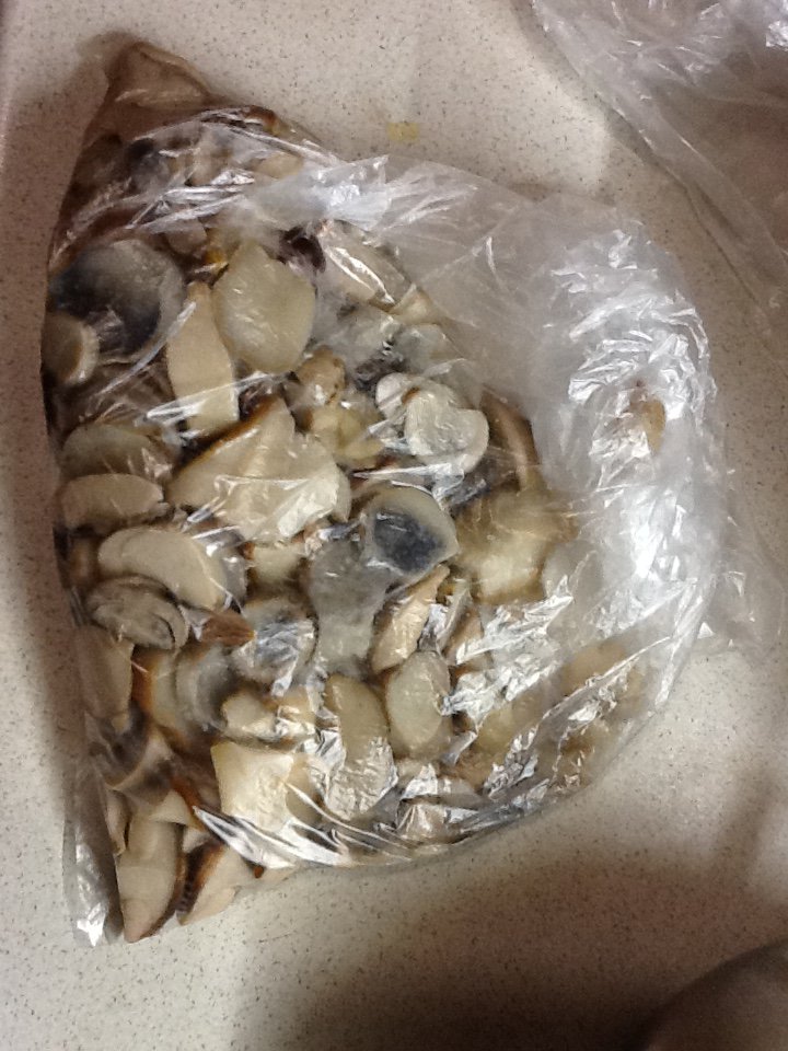 После отварки добавь чуть масла растительного чайную ложку на 3 л продукта, перемешай. чтоб не клеились, возьми литровые тетрапаки от сока с отрезанной крышей, напихай и заморозь. После заморозки достань тетрапаки достань из них грибы в виде кубиков, упакуй в пакеты и не будет у тебя в морозилке непонятных объектов!
