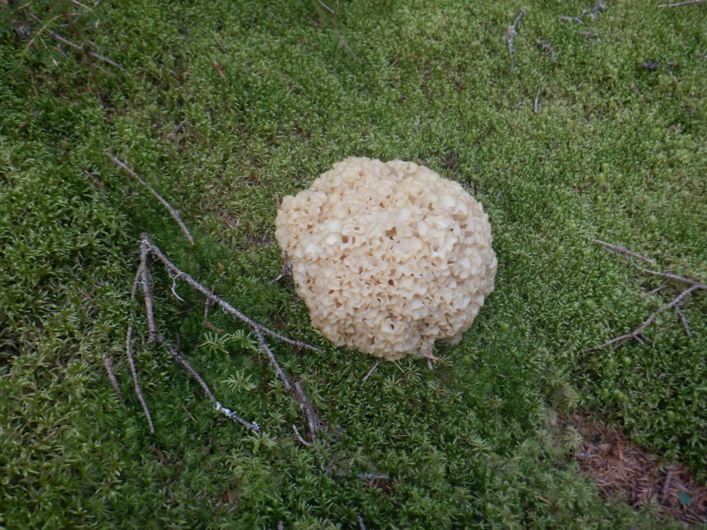 Затем наткнулись на такое чудо, телефон сказал что это спарассис курчавый. По описанию съедобный гриб.
