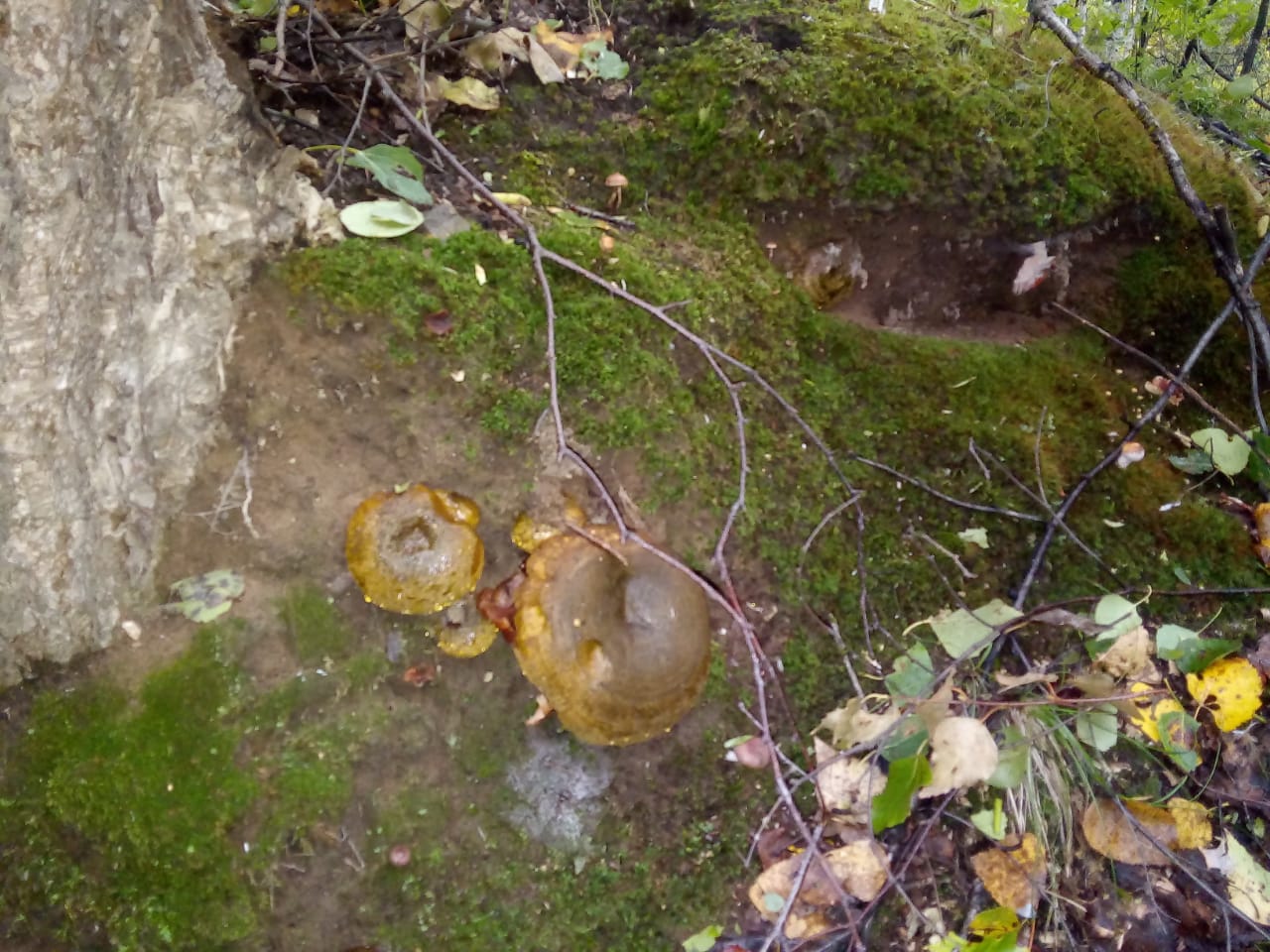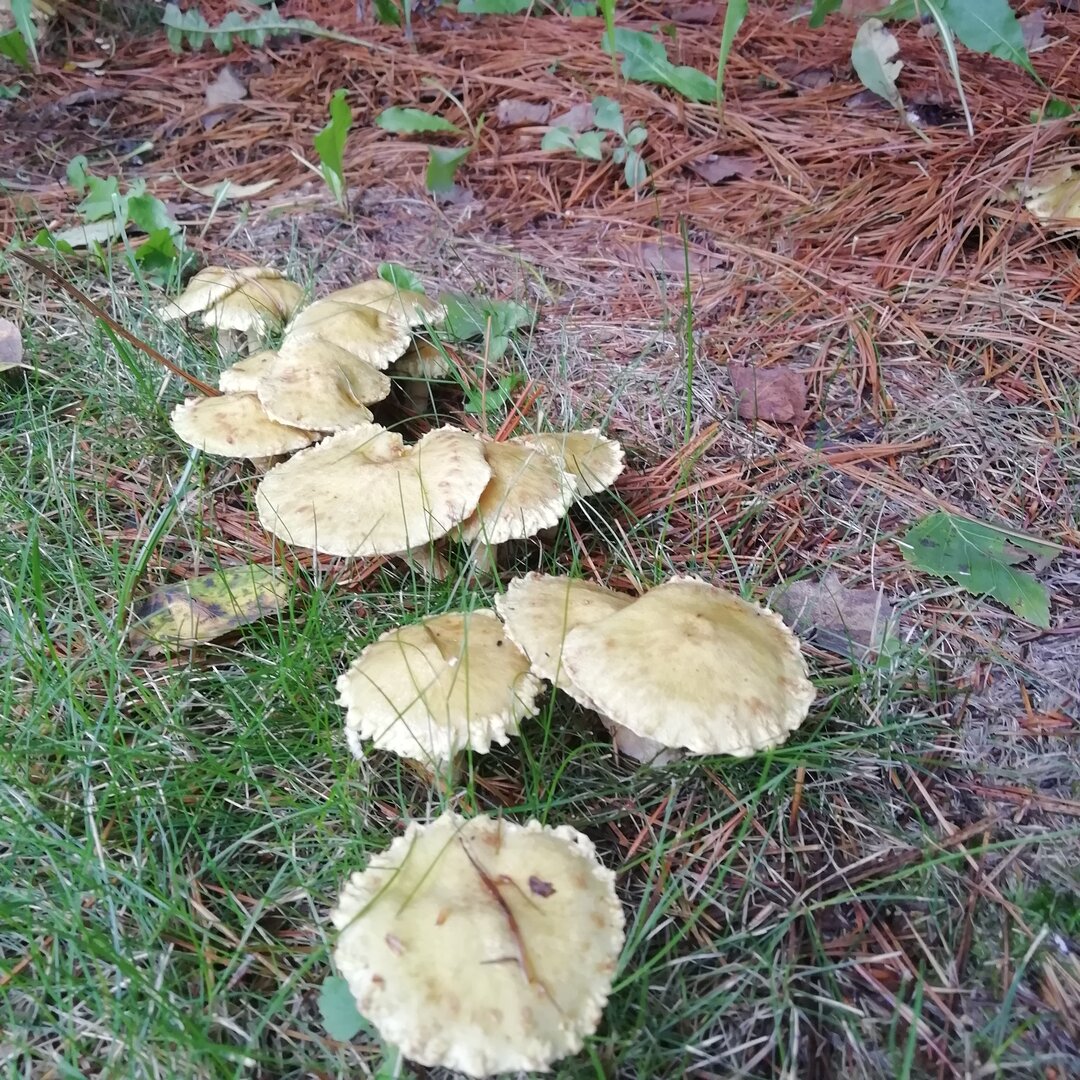 Может кто знает что за грибы, на даче под кедром целые семейки
