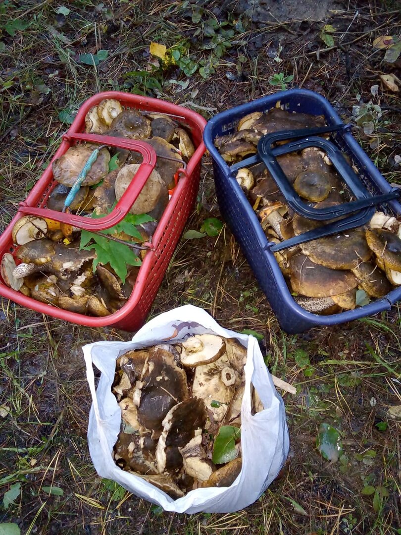 Собрал у себя на даче под кедрами 3 таза, хотел выкинуть, но зашел сосед и обменял три таза этих грибов на 2 ведра боровиков,