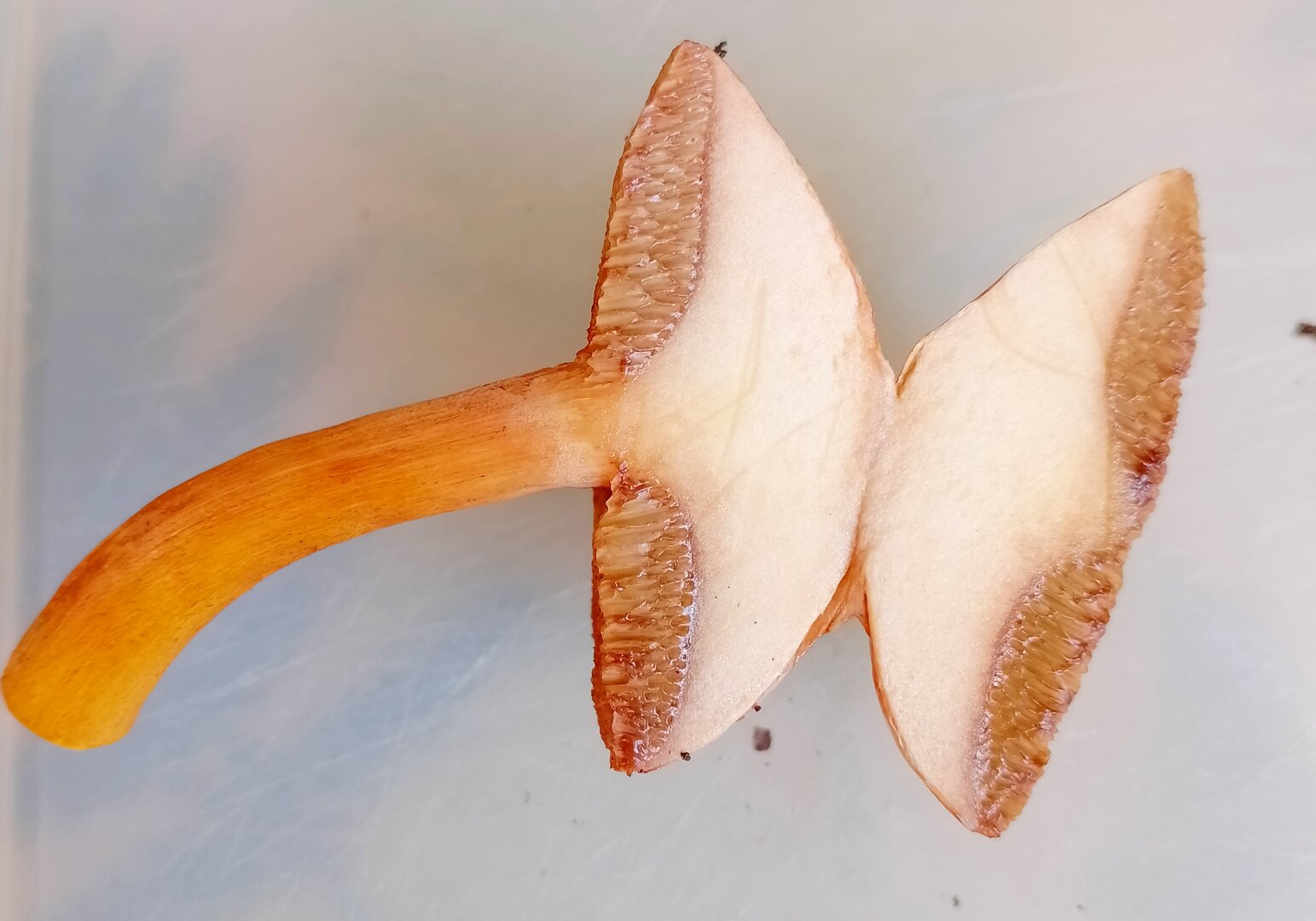Это прикольный перечный гриб его засушить и как специю использовать можно, по виду мелкий моховик рыжеватого окраса