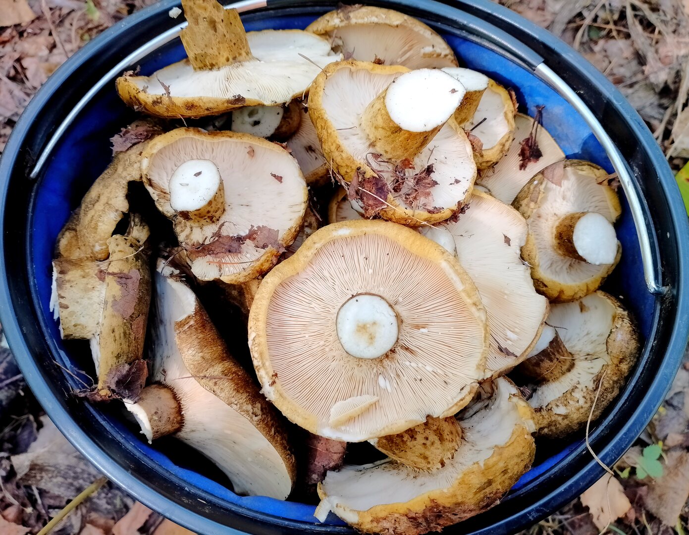 ...итог прогулки, пара ведёрок чёрного груздя, всё по плану...